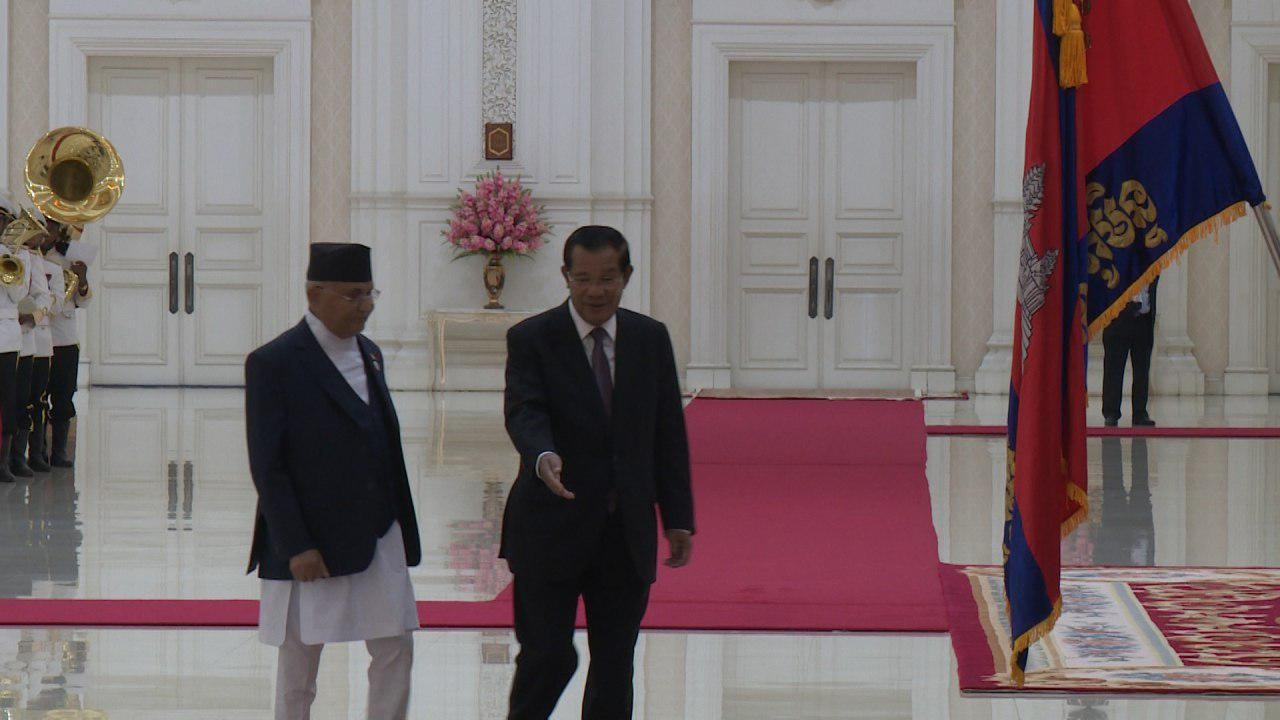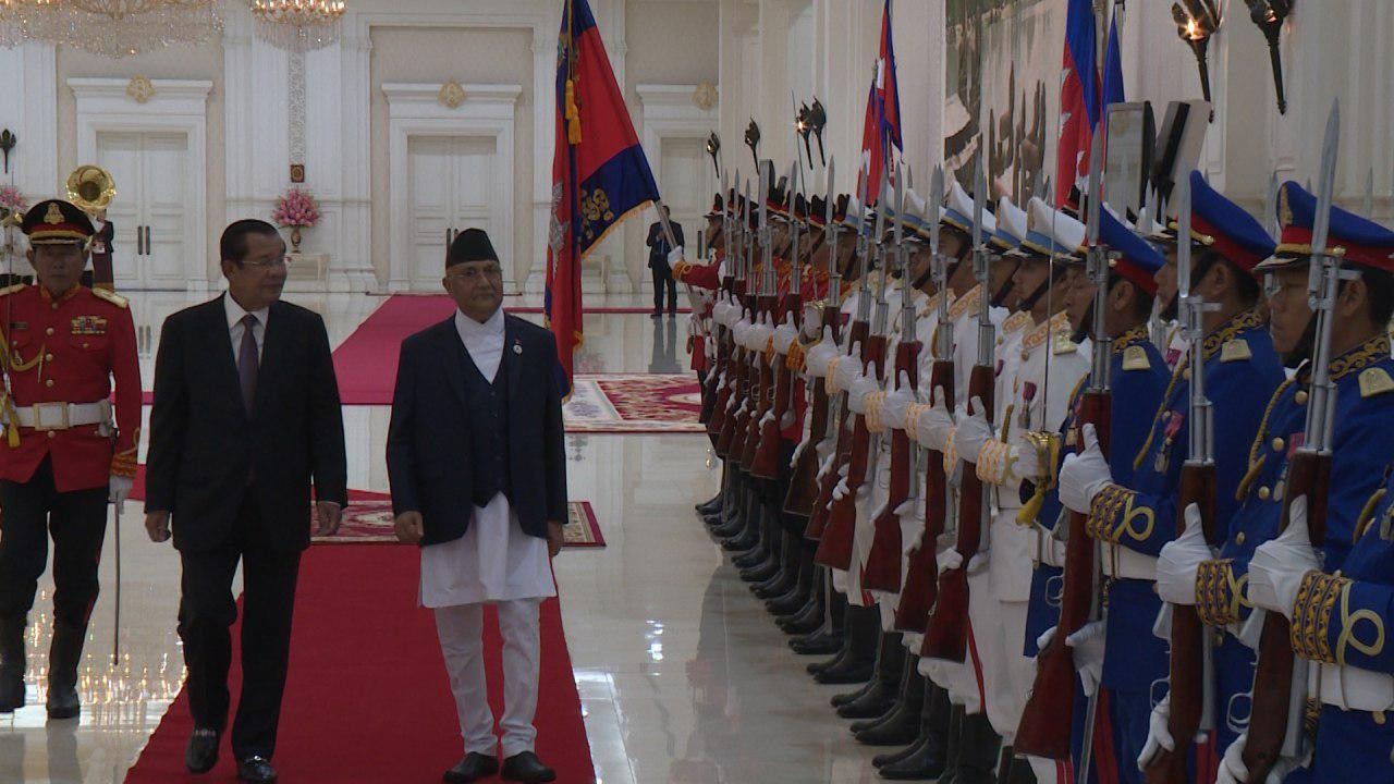 សម្ដេចតេជោ ហ៊ុន សែន នាយករដ្ឋមន្ត្រីកម្ពុជា ទទួលបដិសណ្ឋារកិច្ចនាយករដ្ឋមន្ត្រីនេប៉ាល់ជាផ្លូវការ ក្នុងឱកាសបំពេញទស្សនកិច្ចផ្លូវការរយៈពេល ៣ថ្ងៃ នៅកម្ពុជា