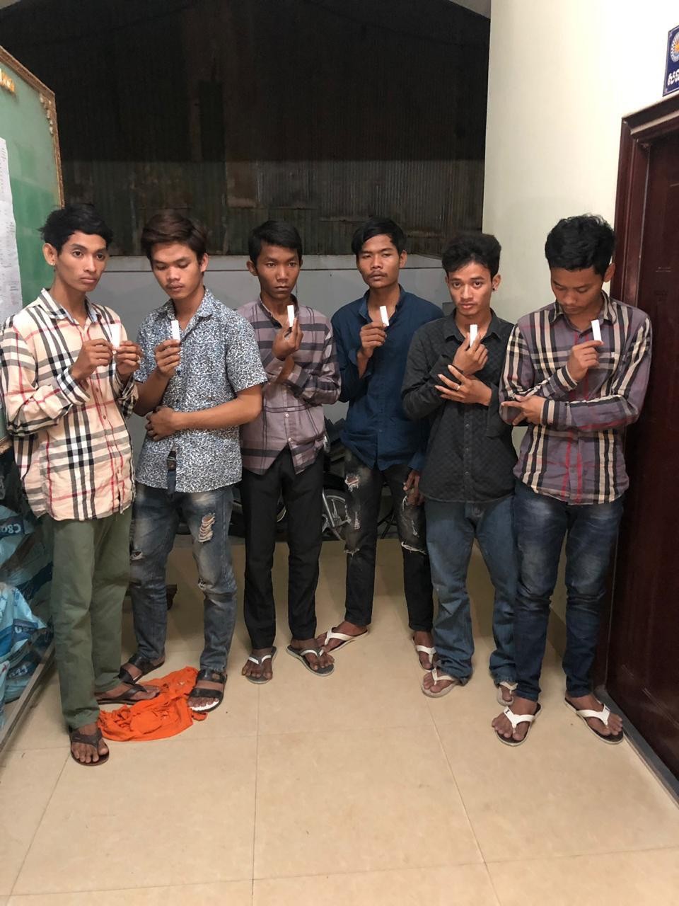 ជនសង្ស័យ៦នាក់ ត្រូវបានកម្លាំងនគរបាលប៉ុស្ដិ៍អូរបែកក្អម ឃាត់ខ្លួន ករណីប្រើប្រាស់គ្រឿងញៀន