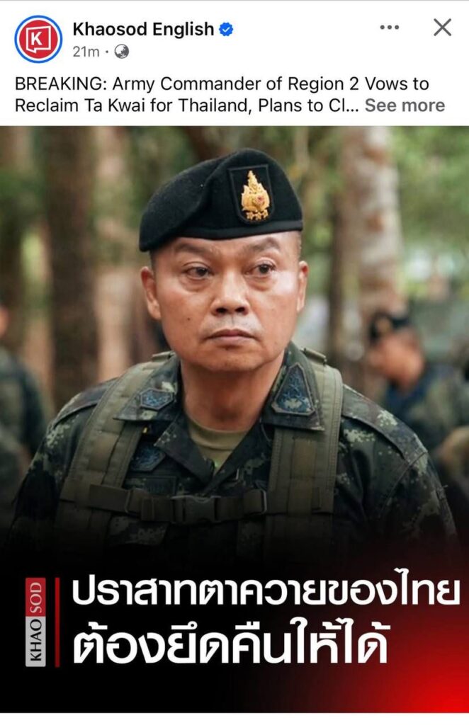 ម្យ៉ាងទៀត នៅពេលដែលកងទ័ពថៃផ្លាស់ទីចូលមកក្នុងដែនអធិបតេយ្យភាពរបស់កម្ពុជាទាំងបំពាន នៅក្រោយ កិច្ចព្រមព្រៀងឈប់បាញ់ ពួកគេបានបង្ហាញចរិតបង្ករឿងជាចំហ តាមរយៈការបង្កើតព័ត៌មានក្លែងក្លាយដើម្បីចោទប្រកាន់កម្ពុជា ក្នុងចេតនាបង្កើតលេសដើម្បីបិទបាំងអំពើល្មើសរបស់ខ្លួន។