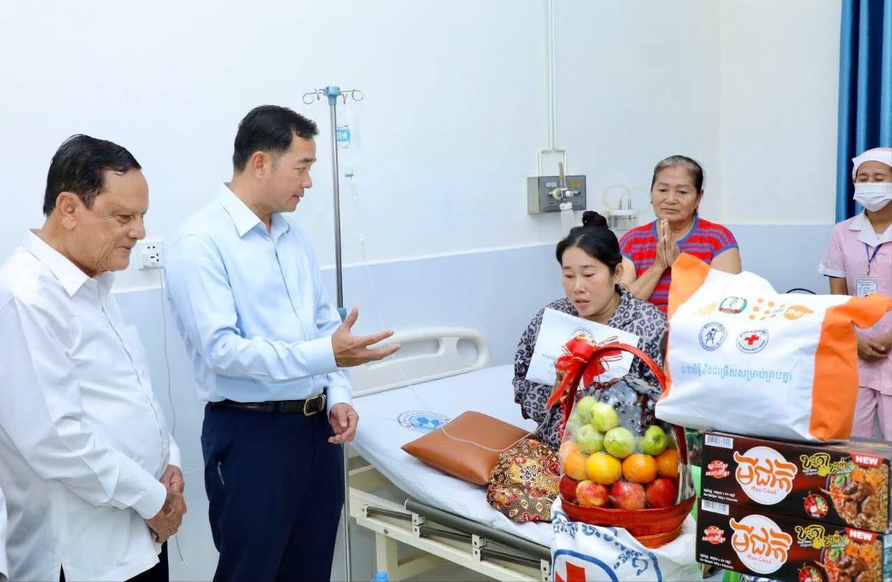 ឯកឧត្តម អ៊ុន ចាន់ដា អញ្ជើញចុះសួរសុខទុក្ខ ភរិយាយោធិនជួរមុខ ជាជនភៀសសឹក ១នាក់ ដែលមកថែទាំសុខភាពត្រៀមសម្រាលកូនក្នុងមន្ទីរពេទ្យបង្អែកខេត្តកំពង់ចាម