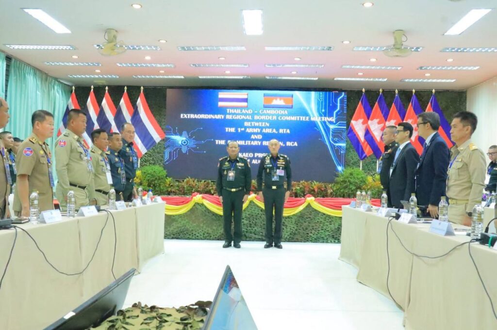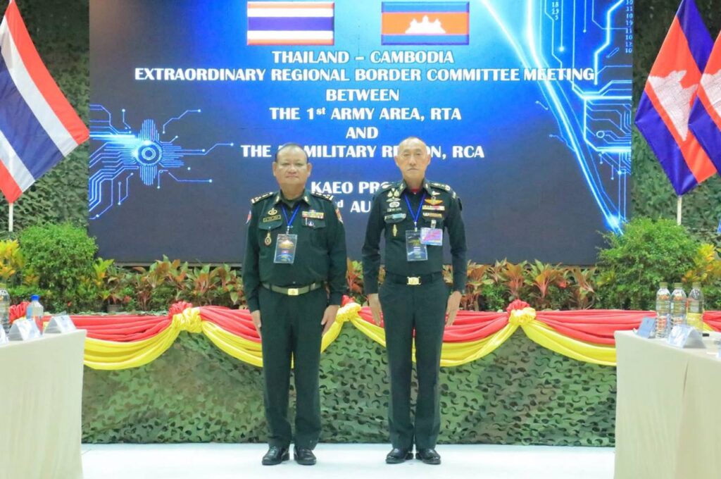 គណៈប្រតិភូកម្ពុជា ដឹកនាំដោយ ឧត្តមសេនីយ៍ឯក ឯក សំអូន មេបញ្ជាការយោធភូមិភាគទី៥ និងជាសហប្រធាននៃកិច្ចប្រជុំវិសាមញ្ញ របស់គណៈកម្មាធិការព្រំដែនថ្នាក់យោធភូមិភាគ (RBC)។ គណៈប្រតិភូថៃ ដឹកនាំដោយ ឧត្តមសេនីយ៍ឯក Amarit Boonsuya មេបញ្ជាការ កងទ័ពភូមិភាគទី១ និងជាសហប្រធាននៃកិច្ចប្រជុំវិសាមញ្ញរបស់ គណៈកម្មាធិការព្រំដែនថ្នាក់យោធភូមិភាគ (RBC)។