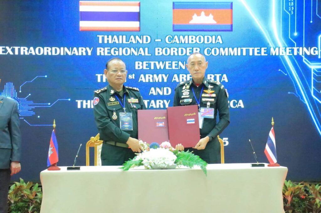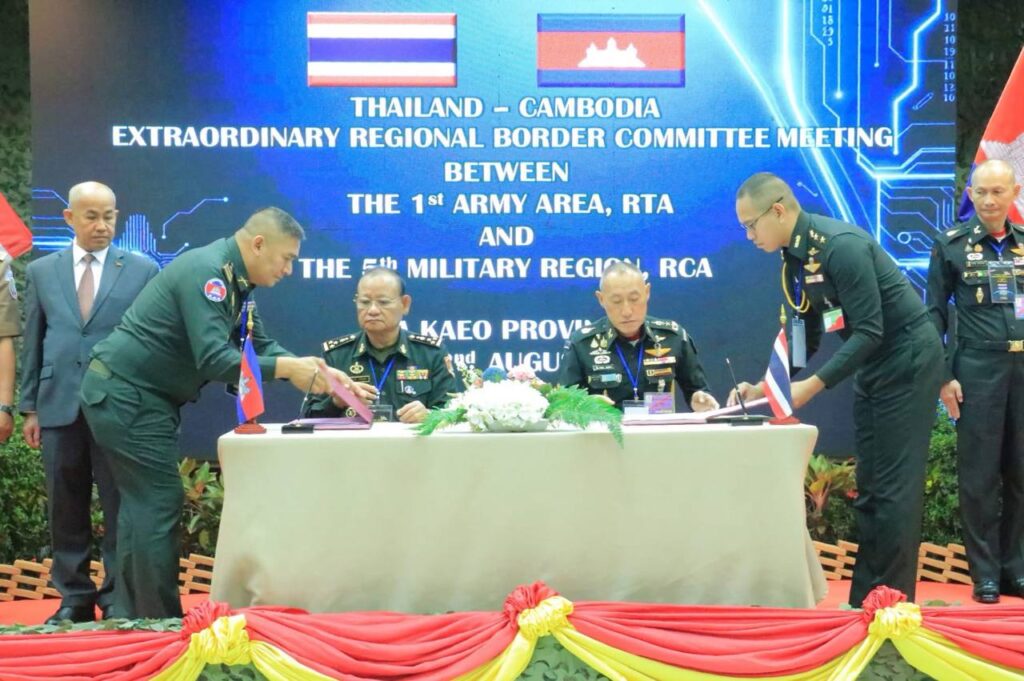 ក្រសួងការពារជាតិ សូមជម្រាបជូនដល់សាធារណជន និងអ្នកសារព័ត៌មានជាតិ និងអន្តរជាតិអំពីលទ្ធផលនៃកិច្ចប្រជុំវិសាមញ្ញ របស់គណៈកម្មាធិការព្រំដែនថ្នាក់យោធភូមិភាគកម្ពុជា-ថៃ (RBC) រវាងយោធភូមិភាគទី៥របស់កម្ពុជា និង កងទ័ពភូមិភាគទី១ របស់ ថៃ នៅថ្ងៃទី២២ ខែសីហា ឆ្នាំ២០២៥ នៅខេត្តស្រះកែវ ព្រះរាជាណាចក្រថៃ។