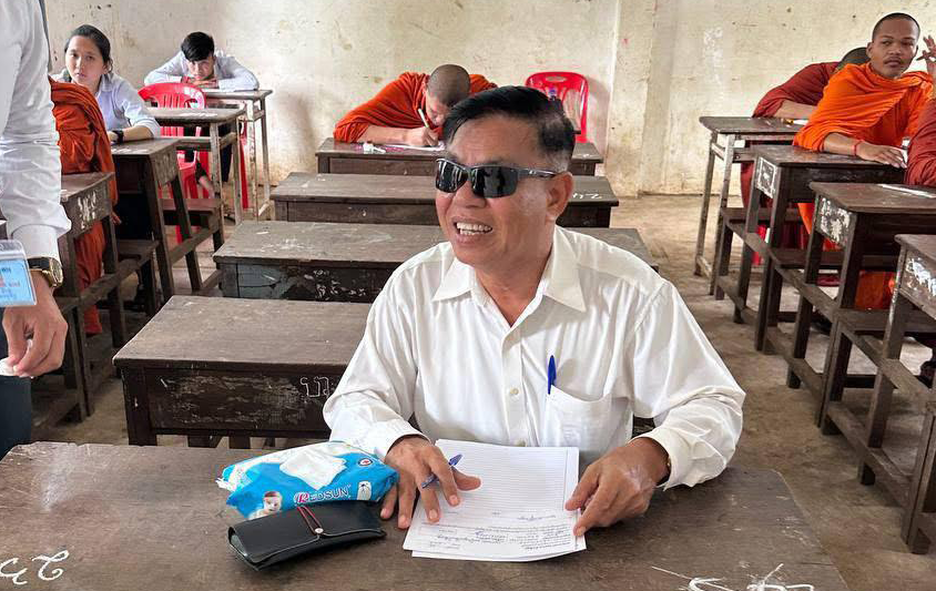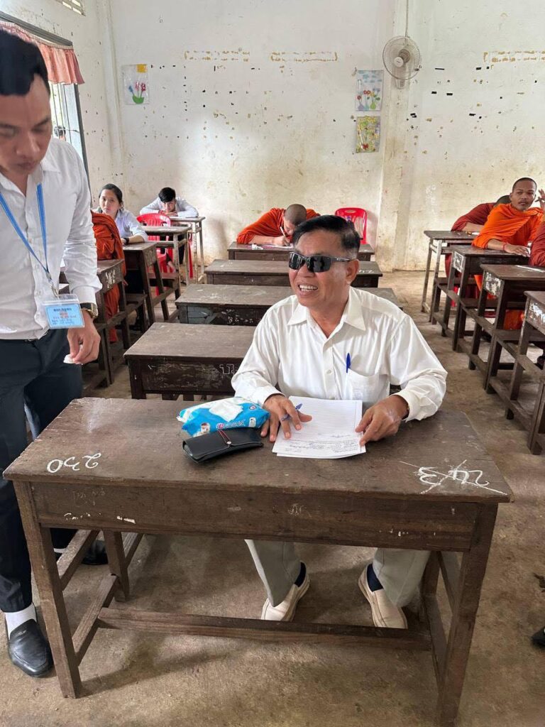 បេក្ខជនប្រឡងបាក់ឌុបវ័យចំណាស់ម្នាក់មើលក្តាខៀនមិនឃើញសុំមកអង្គុយតុមុខ