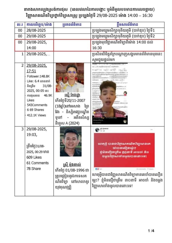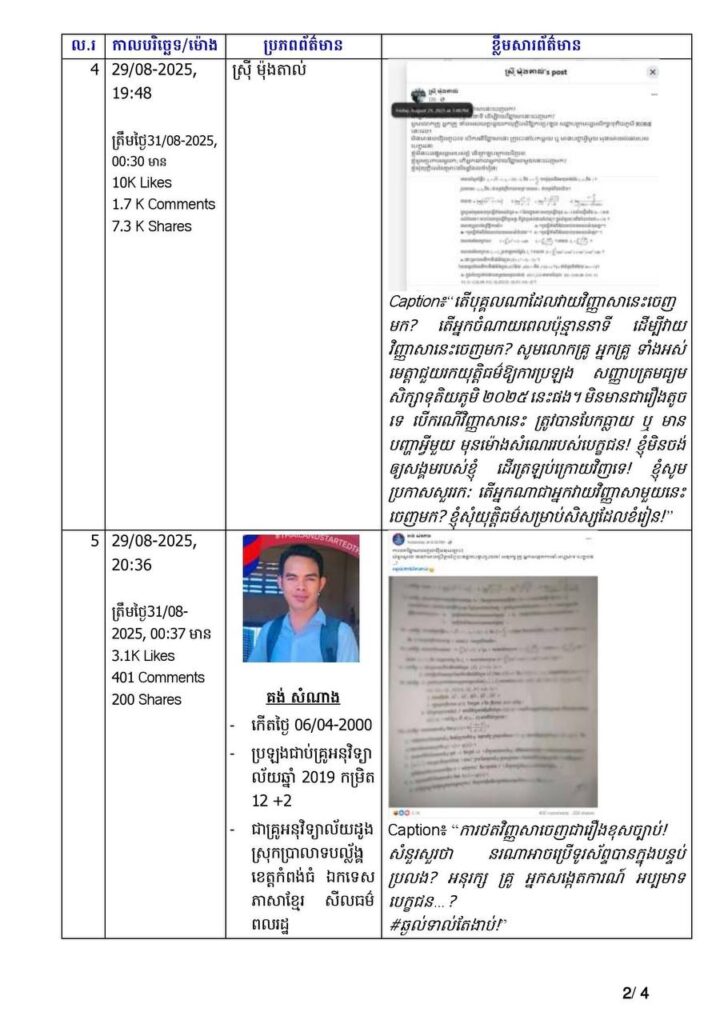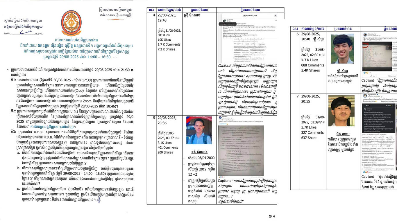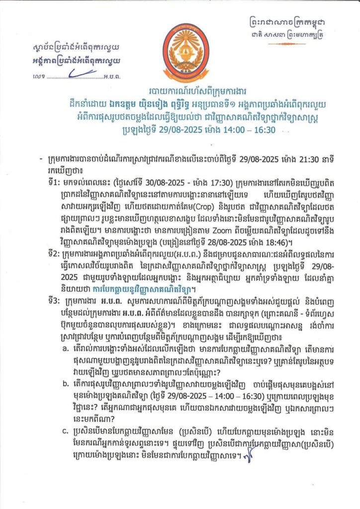 អង្គភាពប្រឆាំងអំពើពុករលួយកំពុងស្រាវជ្រាវអ្នកបង្ហោះ បែកធ្លាយវិញ្ញាសាគណិតវិទ្យា ក្នុងការប្រឡងបាក់ឌុប