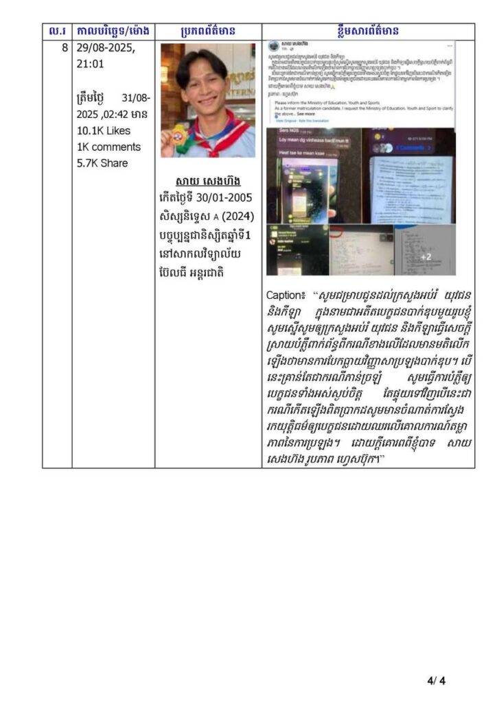 គួរបញ្ជាក់ថាក្រសួងអប់រំយុវជន និង កីឡាបានបញ្ជាក់ថាមិនមានធ្លាយវិញ្ញាសារការប្រឡងបាក់ឌុបឡើយ ហើយករណីបង្ហោះនេះតាមបណ្តាញសង្គមហ្វេសប៊ុកនេះជាការមិនពិត៕
