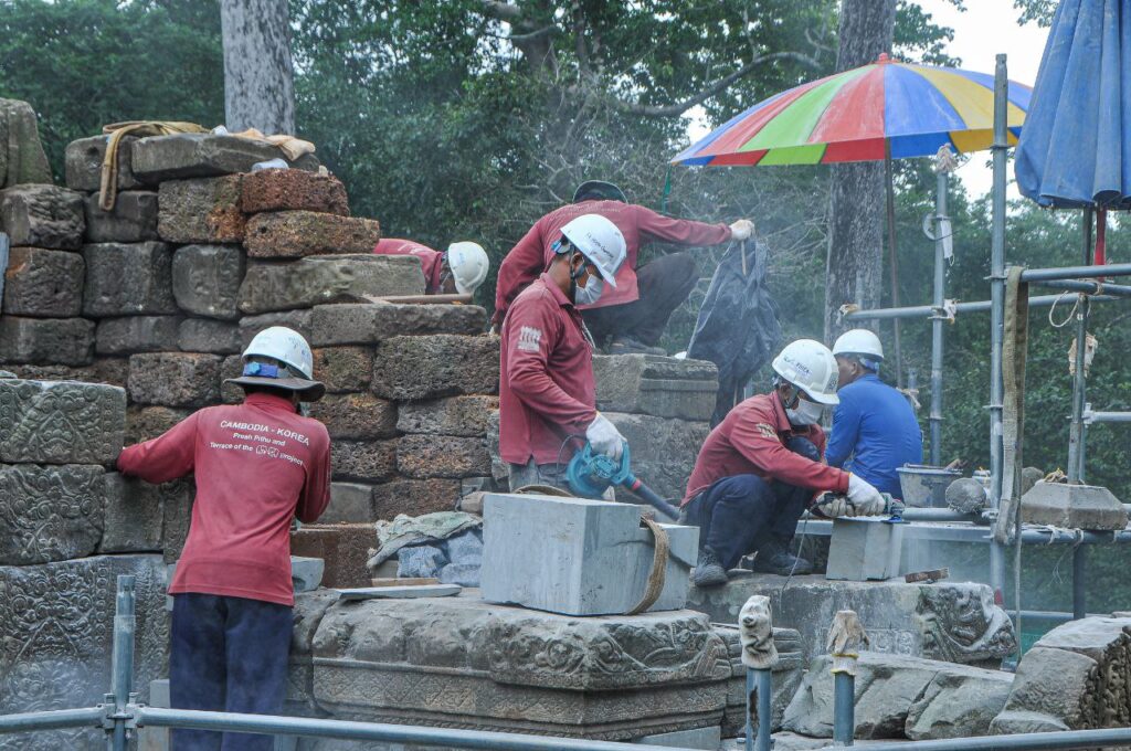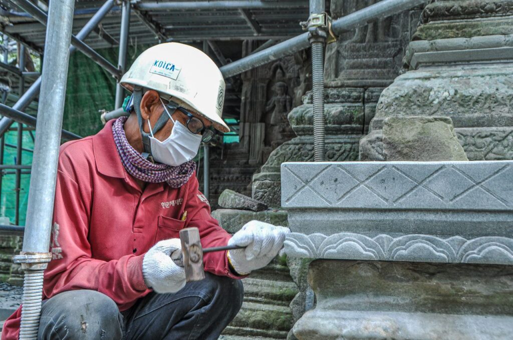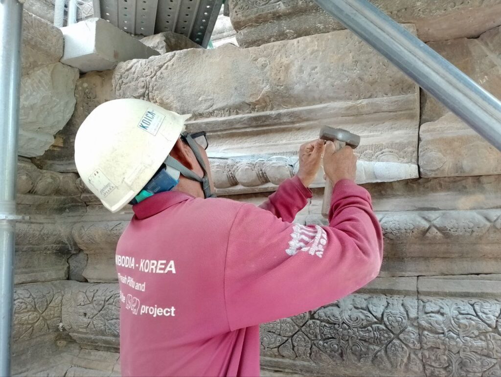 ជាងចម្លាក់ថ្មប្រាសាទជើងចាស់នៅតំបន់អង្គរ អំពាវនាវឱ្យកូនខ្មែររួមគ្នាថែរក្សាសិល្បៈដូនតា និងខិតខំរៀនសូត្រអំពីក្បួនឆ្លាក់ដើម្បីលើកស្ទួយវប្បធម៌ខ្មែរកុំឲ្យបាត់បង់