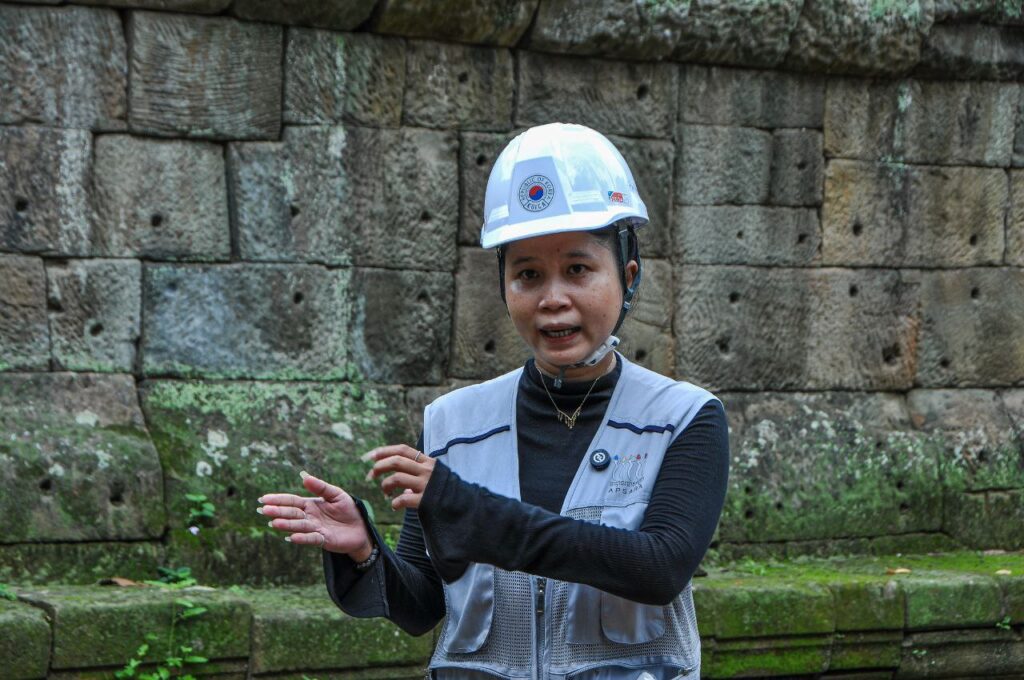 អ្នកនាង នឿង ភីរ៉ា បុគ្គលិកបច្ចេកទេសខាងជួសជុលថ្មរបស់អាជ្ញាធរជាតិអប្សរា សហការជាមួយទីភ្នាក់ងារបេតិក ភណ្ឌកូរ៉េ Korea Heritage Agency (KHA) បានថ្លែងទទួលស្គាល់ស្នាដៃ និងសមត្ថភាពរបស់ជាងចម្លាក់ថ្មរូបនេះ។