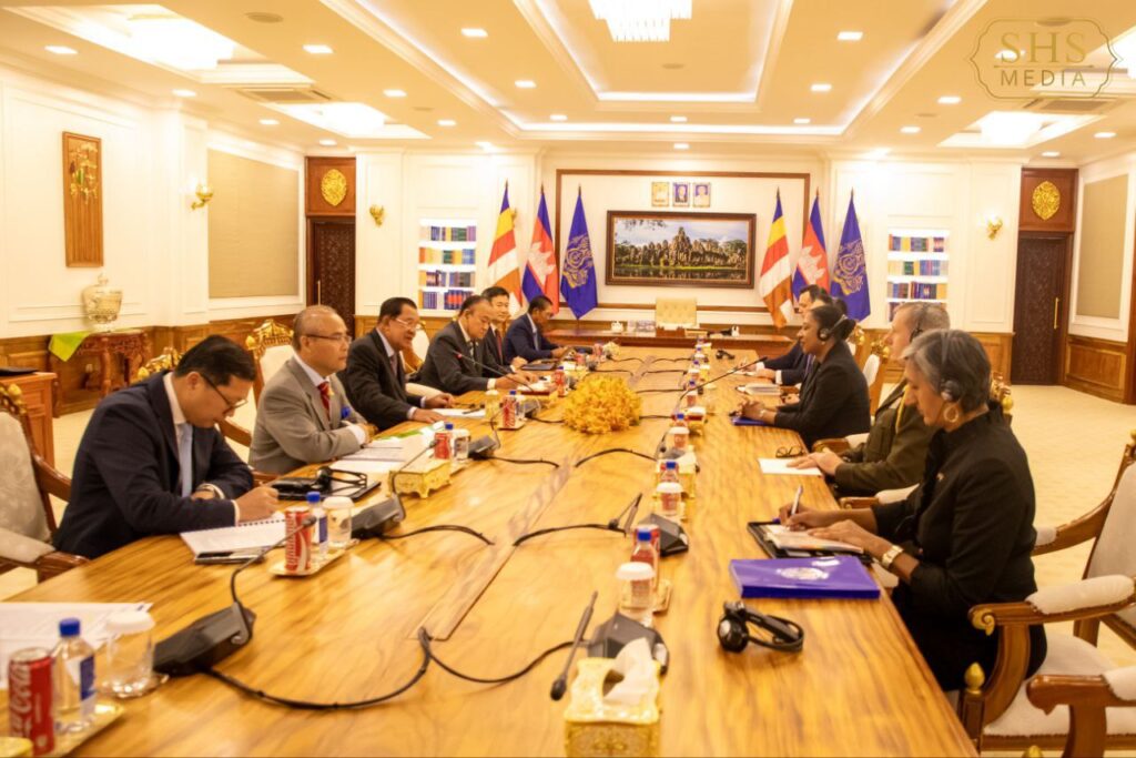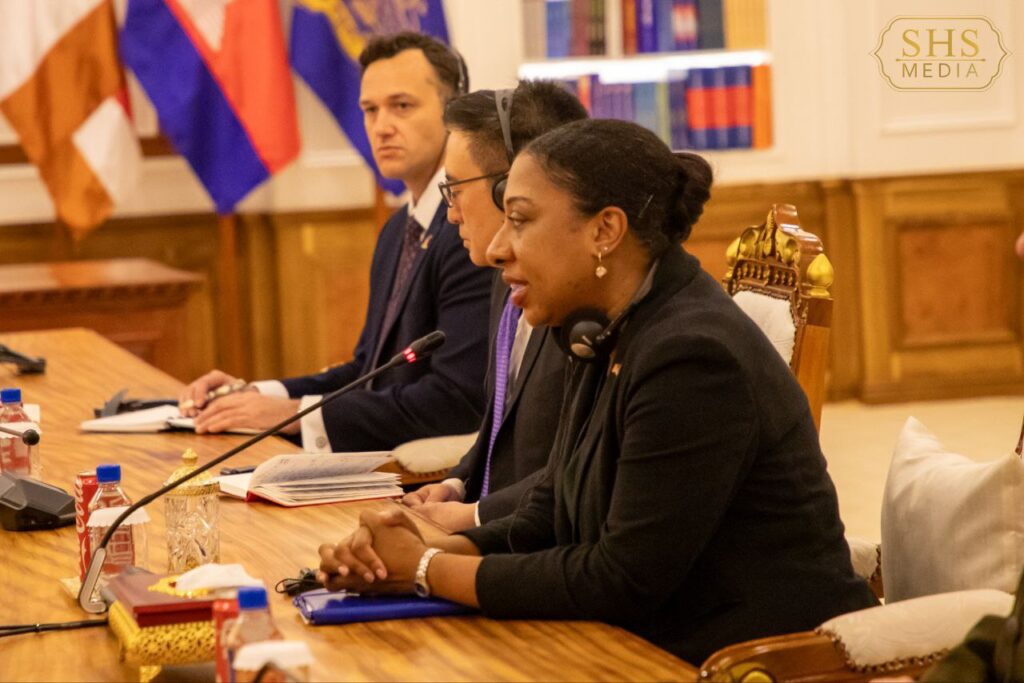 អ្នកនាំពាក្យព្រឹទ្ធសភា ឯកឧត្តម ជា ធីរិទ្ធ បានមានប្រសាសន៍ថា ជាកិច្ចចាប់ផ្តើមសម្តេចតេជោ បានសម្តែងនូវការស្វាគមន៍និងរីករាយដែលបានជួបលោកជំទាវសាជាថ្មី និងសហការីនាពេលនេះ។ សម្តេចត្រៀមជជែកជាមួយលោកជំទាវអំពីបញ្ហាទំនាក់ទំនងរវាងកម្ពុជា និងសហរដ្ឋអាម៉េរិក ហើយជាពិសេសបញ្ហាចុងក្រោយនៃស្ថានភាពព្រំដែនកម្ពុជា ថៃ ដែលសហរដ្ឋអាមេរិកបានដើរតួនាទីយ៉ាងសំខាន់នៅក្នុងការដោះស្រាយបញ្ហារវាងកម្ពុជា និងថៃ នាពេលបច្ចុប្បន្ន។