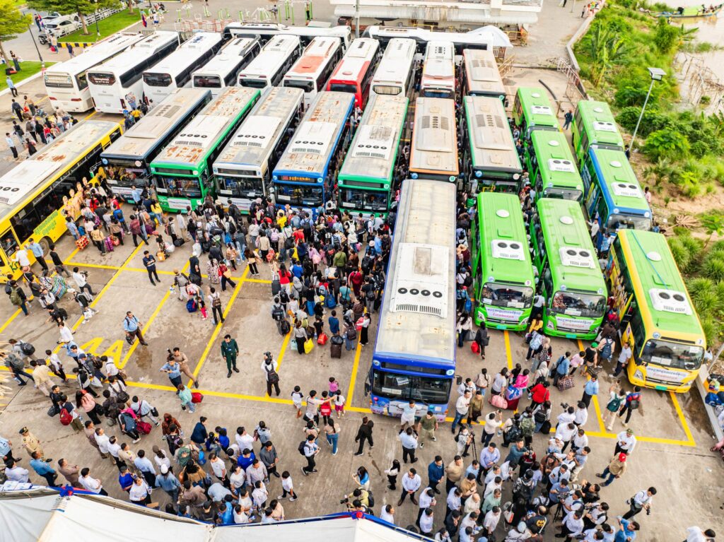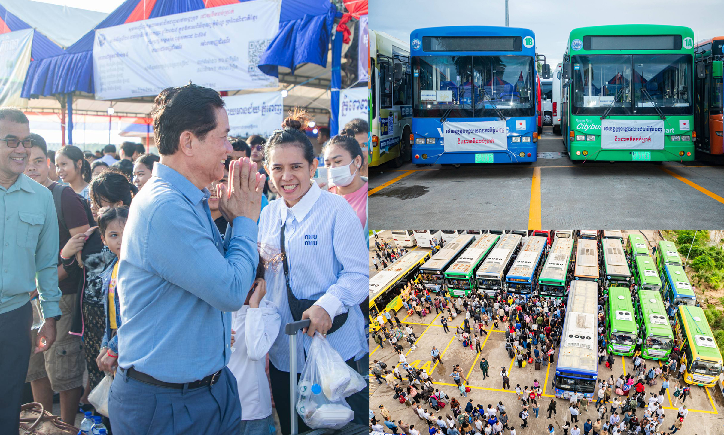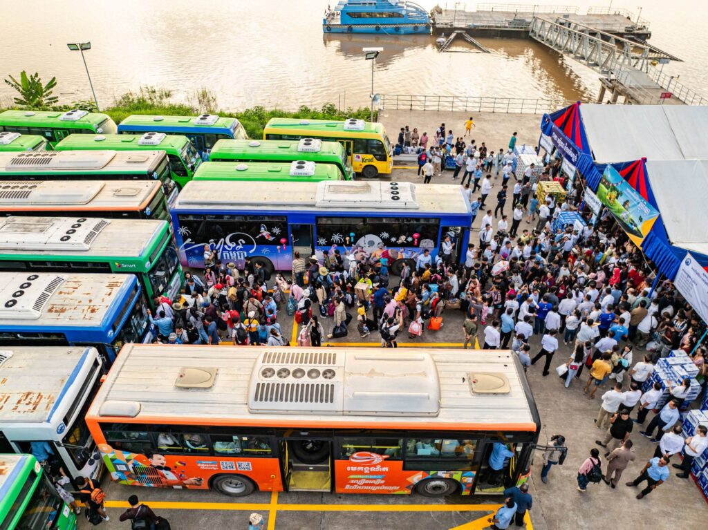 ២-រថយន្តក្រុងចំនួន ៤៩៧គ្រឿង ប្រើប្រាស់សម្រាប់ដឹកជញ្ជូនប្រជាពលរដ្ឋ ពីរាជធានីភ្នំពេញទៅលេងស្រុក កំណើត និងការវិលត្រលប់មកវិញ ដោយមានបែងចែកជាខ្សែរត់ធំៗចំនួន ៧គោលដៅ ព្រមទាំងបានរៀបចំទឹកពិសាបរិសុទ្ធដោយឥតគិតថ្លៃ នៅក្នុងរថយន្តក្រុងនីមួយៗ តាមគោលដៅចេញដំណើរផងដែរ ៕