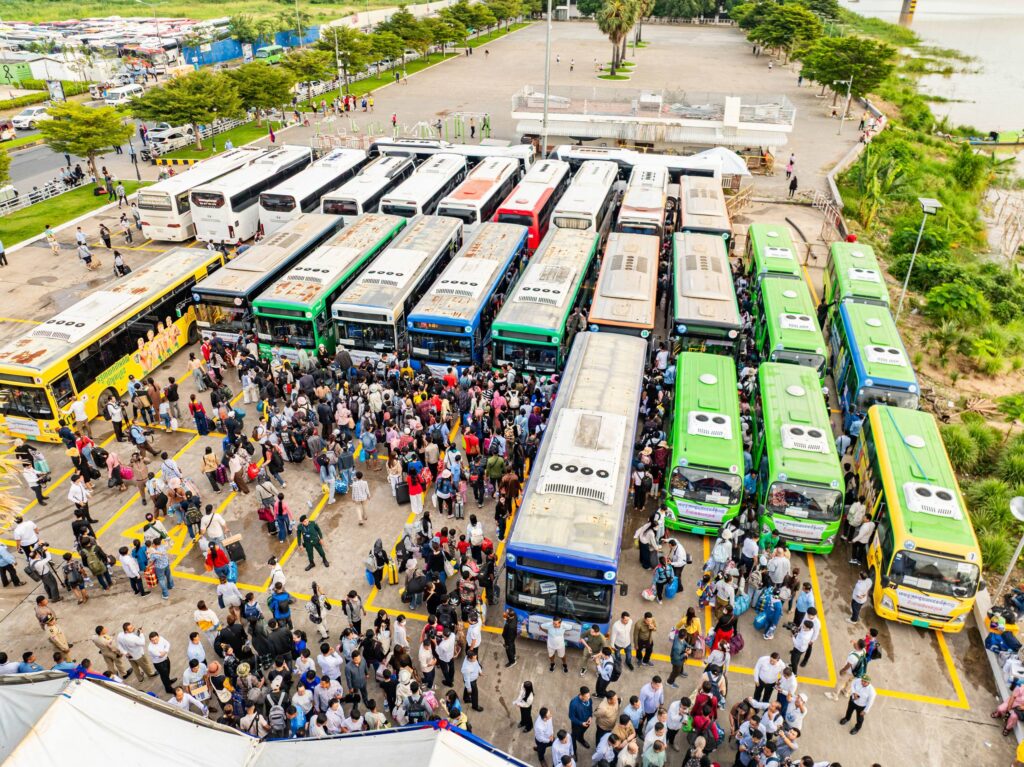 លោកស្រី ដោ សម្ផស្ស នាយិការរងរដ្ឋបាលរាជធានីភ្នំពេញ និងជាអ្នកនាំពាក្យរដ្ឋបាលរាជធានីភ្នំពេញ បានឱ្យដឹងនាល្ងាចថ្ងៃទី២៥ កញ្ញានេះថា រយៈពេល ៦ថ្ងៃ មានប្រជាពលរដ្ឋសរុបចំនួន ៩២.៥២១នាក់ បានធ្វើដំណើរតាមរថយន្តក្រុងសាធារណៈរបស់រដ្ឋបាលរាជធានីភ្នំពេញ ទៅស្រុកកំណើត និងត្រឡប់មកភ្នំពេញវិញ។ បើធៀបនឹងរដូវភ្ជុំឆ្នាំ២០២៤ មានចំនួនត្រឹមតែ ៧១.៣៦០នាក់ គឺឆ្នាំនេះ កើនឡើងប្រមាណ ៣០%។