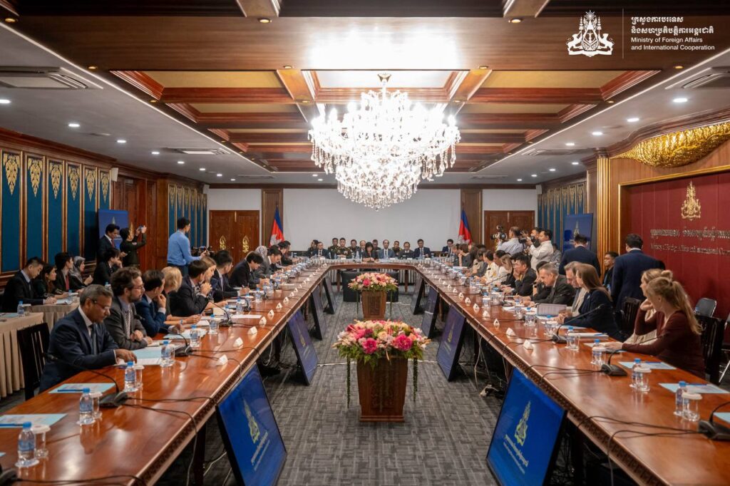 (ភ្នំពេញ)៖ ក្រសួងការបរទេសកម្ពុជា បានបង្ហាញប្រាប់ពីការពិត និងភាពវិវត្តថ្មីៗជុំវិញបញ្ហាជម្លោះព្រំដែនកម្ពុជា-ថៃ ជាពិសេសនៅតំបន់ភូមិព្រៃចាន់ និងភូមិជោគជ័យ ឃុំអូរបីជាន់ ស្រុកអូរជ្រៅ ខេត្តបន្ទាយមានជ័យ ។ ការបង្ហាញនេះ បានធ្វើឡើងដោយ លោកជំទាវ អ៊ាត សោភា រដ្ឋមន្ត្រីស្តីទី ក្រសួងការបរទេស និងសហប្រតិបត្តិការអន្តរជាតិ ទៅកាន់អង្គទូតបរទេសចំនួន ៤៣រូប ដែលមាននិវេសនដ្ឋានក្នុង និងក្រៅប្រទេសកម្ពុជា និងតំណាងទីភ្នាក់ងារអង្គការសហប្រជាជាតិចំនួន ៦រូប បានចូលរួមស្តាប់ នៅទីស្តីការក្រសួង នាព្រឹកថ្ងៃទី២៥ ខែកញ្ញា ឆ្នាំ២០២៥ ។