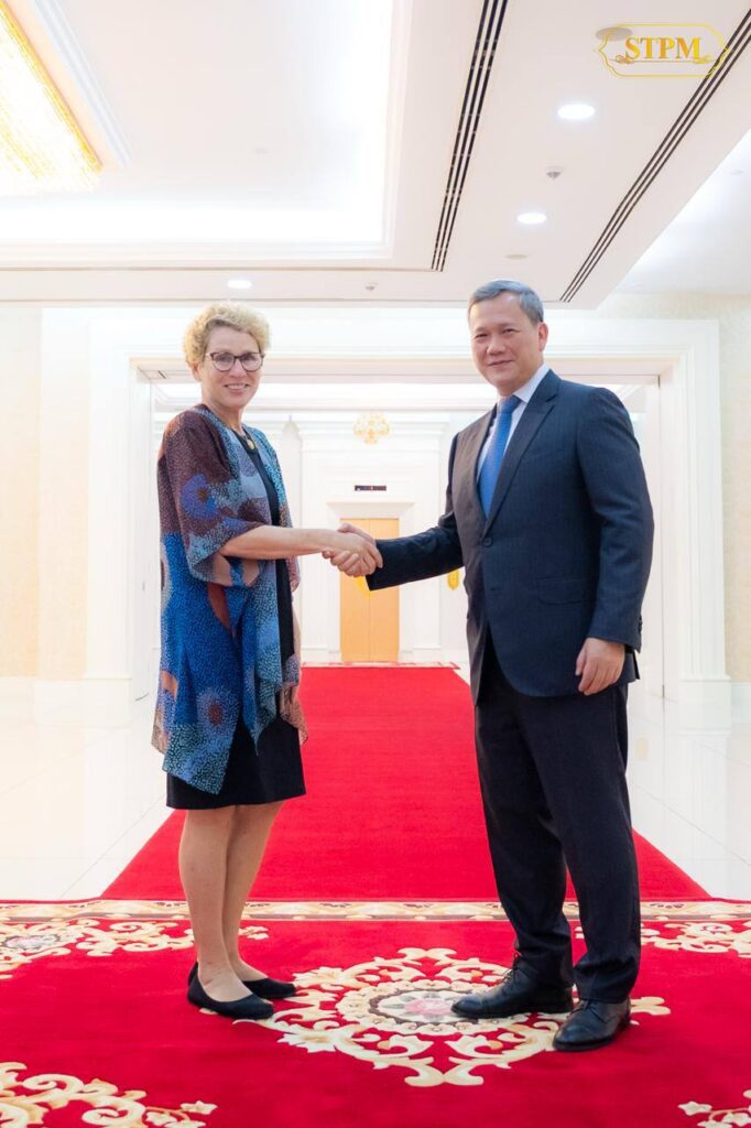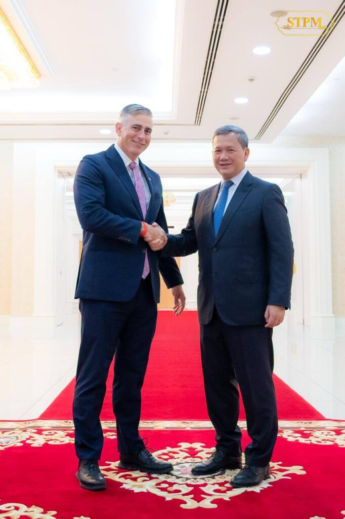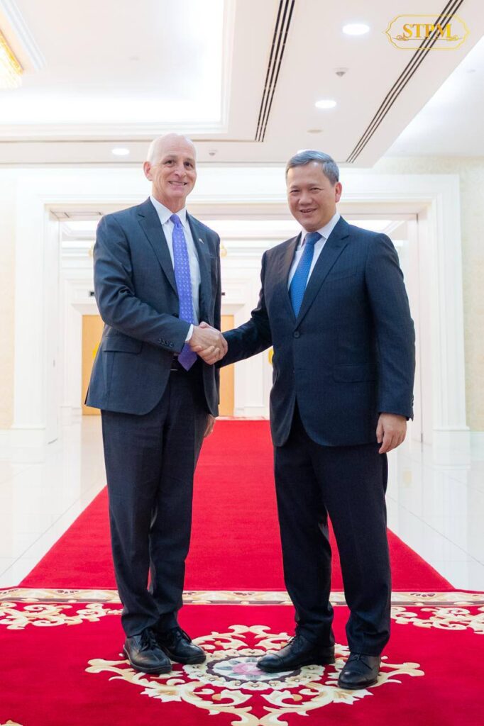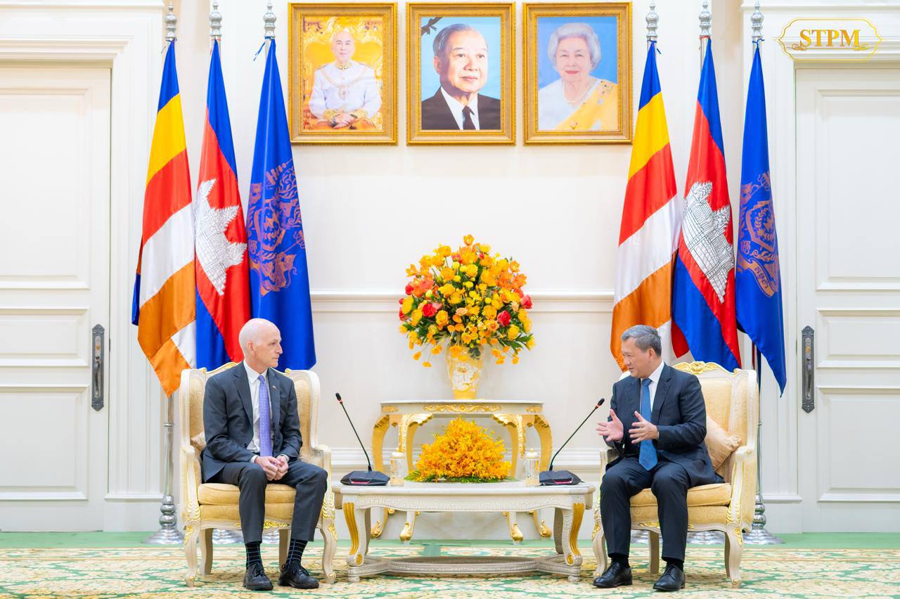 (ភ្នំពេញ)៖ សម្តេចមហាបវរធិបតី ហ៊ុន ម៉ាណែត នាយករដ្ឋមន្ត្រី កម្ពុជា បានអនុញ្ញាតឱ្យគណៈប្រតិភូសភាសហរដ្ឋអាមេរិក ដឹកនាំដោយឯកឧត្តម Adam Smith សមាជិកសភាប្រចាំរដ្ឋ Washington រួមដំណើរដោយឯកឧត្តម Michael Baumgartner សមាជិកសភាប្រចាំរដ្ឋ Washington និងលោកជំទាវ Chrissy Houlahan សមាជិកសភាប្រចាំរដ្ឋ Pennsylvania ចូលជួបសម្តែងការគួរសម និងពិភាក្សាការងារ នារសៀល ថ្ងៃទី២៦ ខែកញ្ញា ឆ្នាំ២០២៥ នៅវិមានសន្តិភាព ។