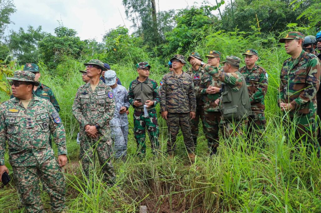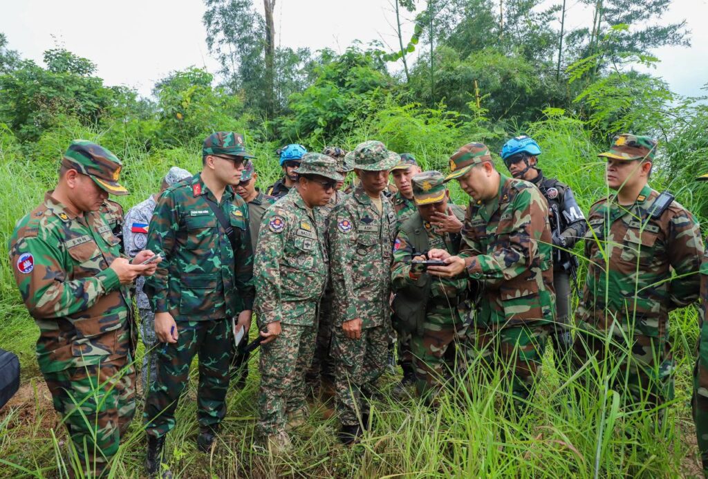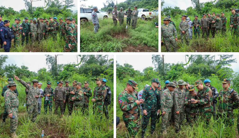 On Sunday morning of September 28, 2025, the Ministry of National Defence of the Kingdom of Cambodia facilitated the visit of the Interim Observers Team (IOT), led by Malaysia along with its members, to inspect the actual sites affected by two rounds of attacks carried out by the Thai military forces using mortar and small arms against the Cambodian military base in An Seh area, Preah Vihear Province, on September 27, 2025. The purpose of this visit was to observe, verify, and report the situation after the ceasefire came into effect.