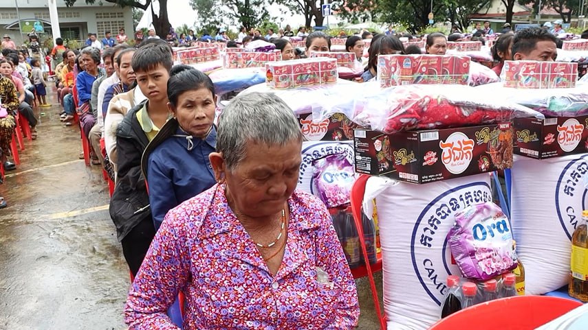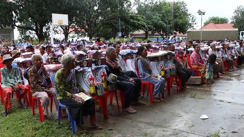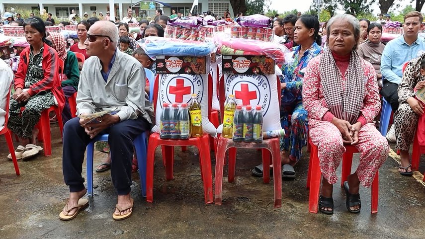 គ្រួសាររងគ្រោះនីមួយៗទទួលបាន អង្ករ ៣០គីឡូក្រាម, មីមួយកេស, ត្រីខ១០កំប៉ុង, ទឹកស៊ីអ៊ីវប្រាំមួយដប, ប្រេងឆាមួយដប, ម្សៅសាប៊ូមួយកញ្ចប់ និងឃីតមួយកញ្ចប់(មុង ភួយ សារុង ក្រមា)។