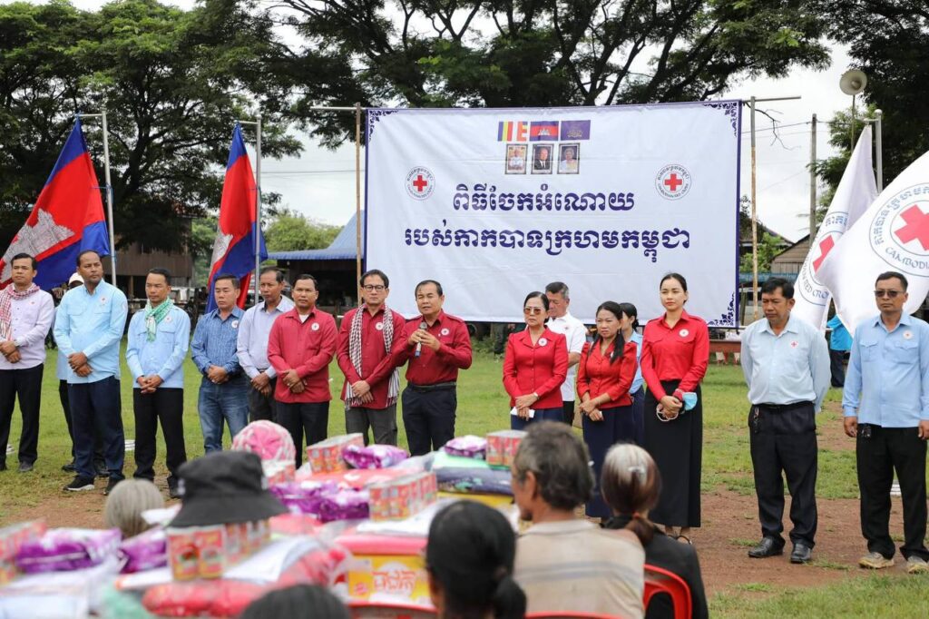 (ភ្នំពេញ)៖ ឆ្លើយតបតាមតម្រូវការចាំបាច់ និងដើម្បីជួយសម្រាលការលំបាកដល់ប្រជាជនរងគ្រោះដោយទឹកជំនន់រហ័សនាពេលថ្មីៗនេះ កាកបាទក្រហមកម្ពុជា ក្រោមម្លប់គង់ប្រថាប់ដ៏ឧត្ដុង្គឧត្តមនៃសម្តេចព្រះមហាក្សត្រី ព្រះវររាជមាតាជាតិខ្មែរ ជាព្រះប្រធានកិត្តិយស និងក្រោមការដឹកនាំប្រកបដោយគតិបណ្ឌិតនៃសម្តេចកិត្តិព្រឹទ្ធបណ្ឌិត ប៊ុន រ៉ានី ហ៊ុនសែន ជាប្រធាន បានសម្រេចផ្តល់អំណោយមនុស្សធម៌ជូនប្រជាជនរងគ្រោះចំនួន ១.៨៥០គ្រួសារ រស់នៅខេត្តចំនួនពីរនៃភាគឦសានប្រទេសកម្ពុជា គឺខេត្តមណ្ឌលគិរីចំនួន ៩៥០គ្រួសារ និងខេត្តរតនគិរីចំនួន ៩០០គ្រួសារ ។