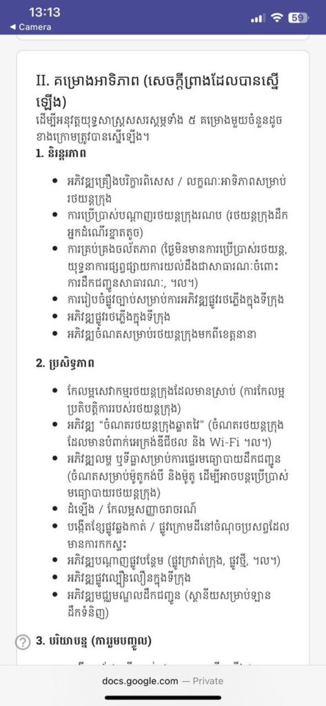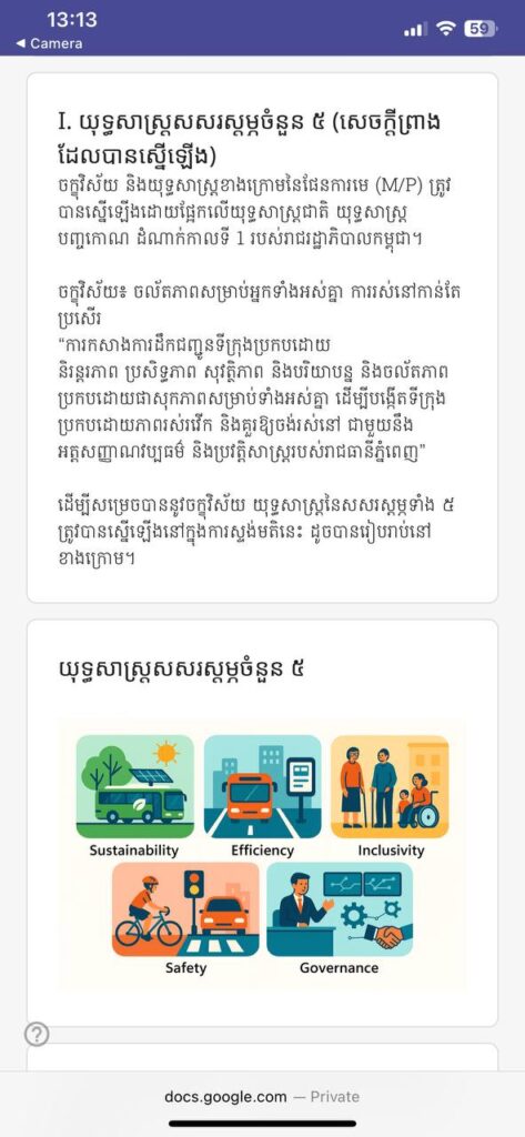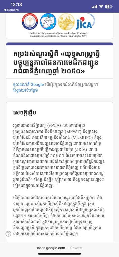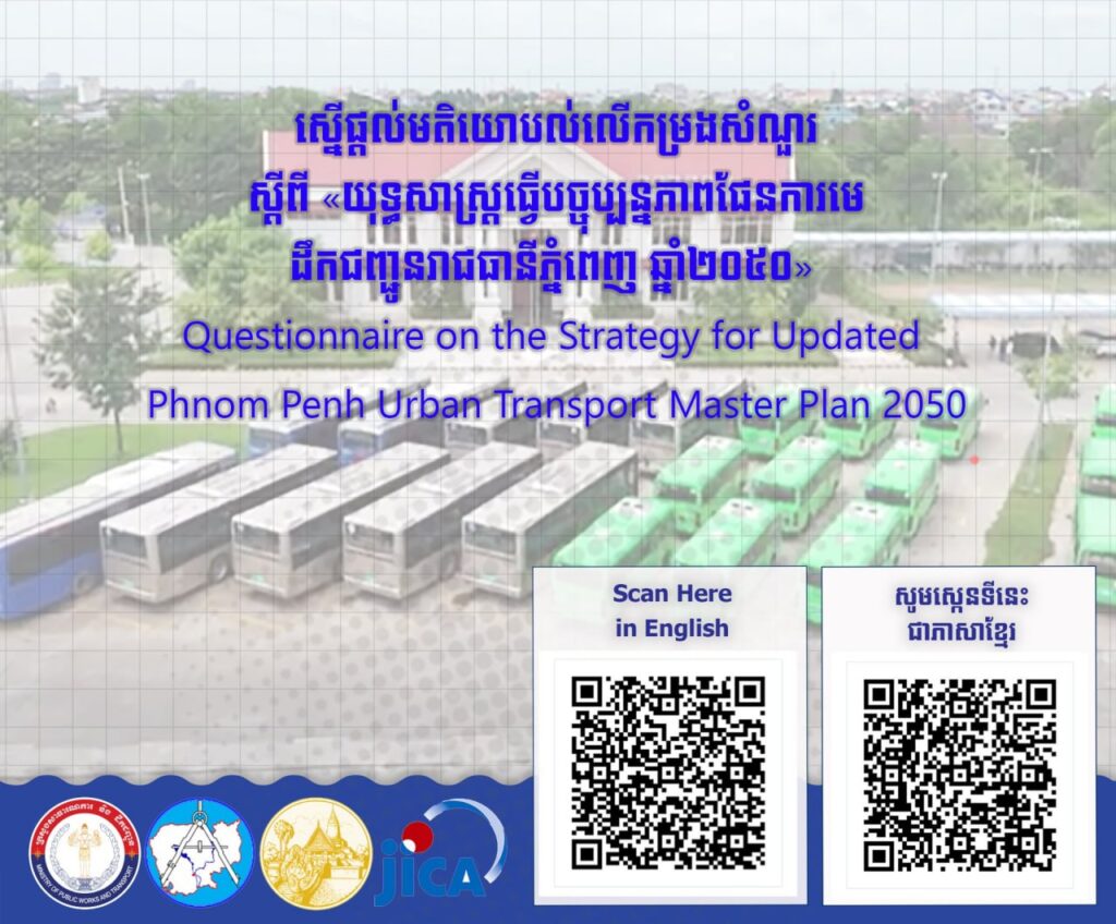 ក្រសួងសារធារណៈការដាក់ឱ្យសារធារណៈជនចូលរួមផ្តល់មតិយោបល់លើកម្រងសំណួរ ស្ដីពី «យុទ្ធសាស្ត្រធ្វើបច្ចុប្បន្នភាពផែនការមេដឹកជញ្ជូនរាជធានីភ្នំពេញ ឆ្នាំ២០៥០»