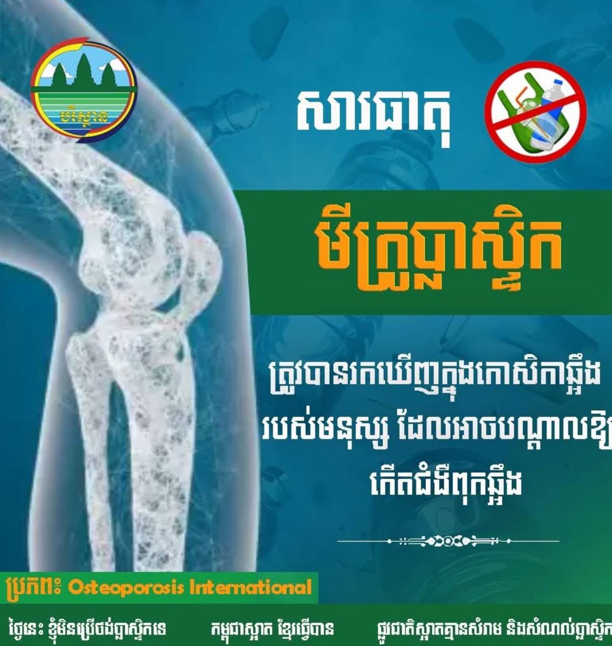 (ភ្នំពេញ)៖ ក្រសួងបរិស្ថាននៅថ្ងៃទី ២៩ ខែ កញ្ញា ឆ្នាំ២០២៥នេះបានបង្ហាញពីអត្ថបទ បរទេស ដើម្បីស្វែងយល់អំពីគ្រោះថ្នាក់កើតចេញពីសារជាតិបា្លស្ទិក។អត្ថបទនេះដែរបានបង្ហាញពីការវិវត្តនៃគ្រោងឆ្អឹង និង ភាពរឹងមាំរបស់វា មានតួនាទីសំខាន់សម្រាប់សុខភាពមនុស្សយើង។