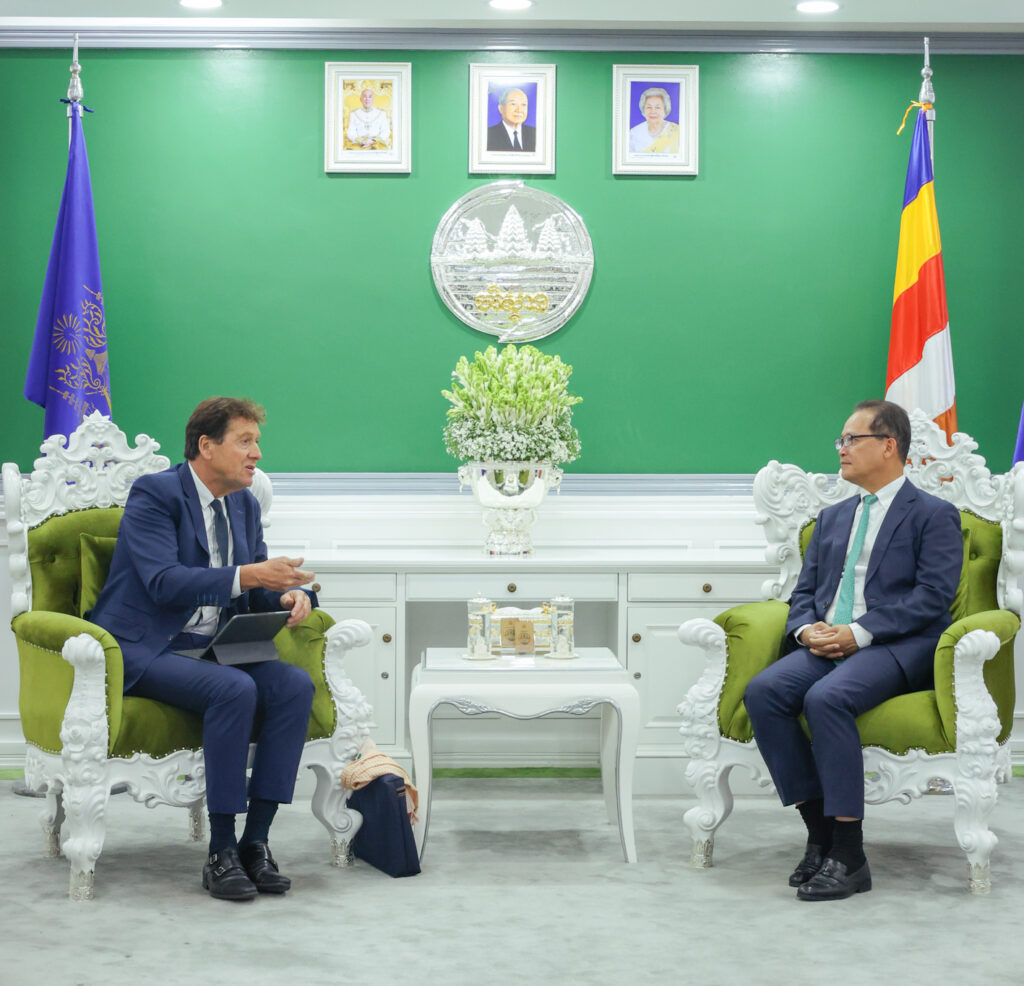 (ភ្នំពេញ)៖ ក្នុងឱកាសទទួលបានការអនុញ្ញាតជួបសំដែងការគួរសម និងពិភាក្សាការងារ ជាមួយឯកឧត្តមបណ្ឌិត អ៊ាង សុផល្លែត រដ្ឋមន្រ្តីក្រសួងបរិស្ថាន កាលពីថ្ងៃទី ២៩ ខែកញ្ញា ឆ្នាំ២០២៥ នៅទីស្តីការក្រសួងបរិស្ថាន លោក Christope Crépin ប្រធានគ្រប់គ្រងប្រចាំតំបន់អាស៊ីបូព៌ា និងជាអនុប្រធានប្រចាំតំបន់ប៉ាស៊ីហ្វិករបស់ធនាគារពិភពលោក ទទួលបន្ទុកការងារបរិស្ថាននិងធនធានធម្មជាតិ បានលើកឡើងពីការពង្រឹងកិច្ចសហប្រតិបត្តិ របស់ធានាគារពិភពលោក ជាមួយរាជរដ្ឋាភិបាលកម្ពុជា ជាពិសេសជាមួយក្រសួងបរិស្ថាន ដើម្បីធានាការអភិវឌ្ឍជីវភាពរបស់ប្រជាពលរដ្ឋ ការការពារបរិស្ថាននិងធនធានធម្មជាតិនៅកម្ពុជា។