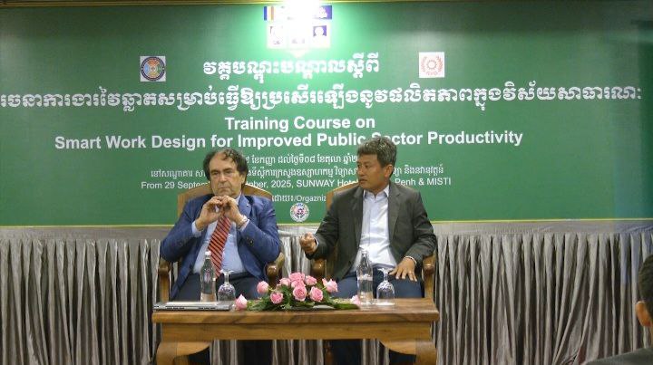 (ភ្នំពេញ)៖ មជ្ឈមណ្ឌលផលិតភាពជាតិនៃកម្ពុជា ក្នុងគោលបំណងដើម្បីផ្សព្វផ្សាយ និងពង្រឹងសមត្ថភាពមន្ត្រីសាធារណក្នុងបំរើសេវាកម្មជូនប្រជាពលរដ្ឋឲ្យមានភាពរហ័សជាងមុន បានរៀបចំវគ្គបណ្តុះបណ្តាលនេះក្រោមប្រធានបទ «ការរចនាការងារវៃឆ្លាតសម្រាប់ធ្វើឲ្យប្រសើឡើងនូវផលិតភាពក្នុងសវិស័យសាធារណៈ» ។ វគ្គបណ្តុះបណ្តាលនេះ ធ្វើឡើងក្រោមការចូលរួមសហការពីអង្គការ APO ដែលមានរយៈពេល ៨ថ្ងៃ ចាប់ពីថ្ងៃទី២៩ ខែកញ្ញា ដល់ថ្ងៃទី០៦ ខែតុលា ឆ្នាំ២០២៥ នៅសណ្ឋាគាសាន់វ៉េ ក្នុងរាជធានីភ្នំពេញ ។