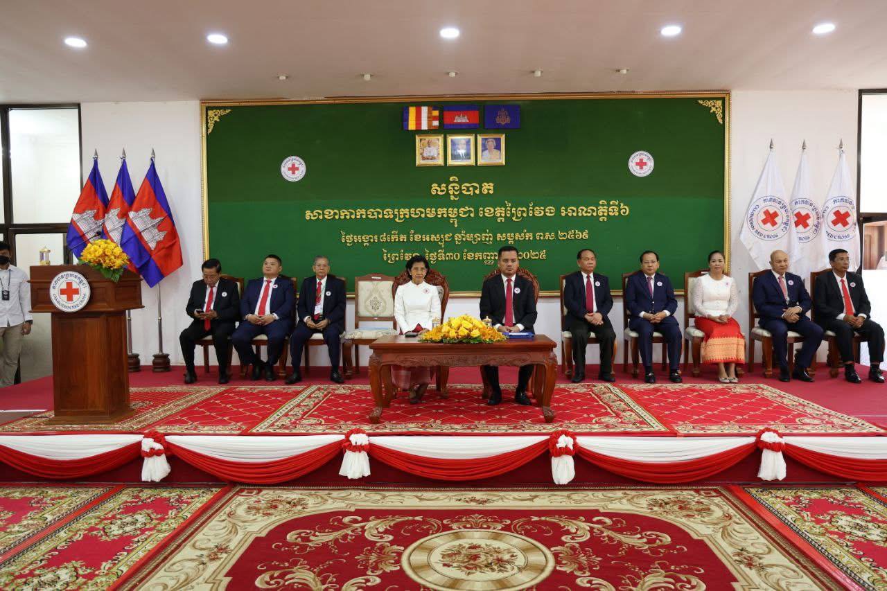 (ព្រៃវែង)៖ លោកជំទាវ ពុំ ចន្ទីនី អគ្គលេខាធិការកាកបាទក្រហមកម្ពុជា, ឯកឧត្តមអភិសន្តិបណ្ឌិត ស សុខា ឧបនាយករដ្ឋមន្ត្រី រដ្ឋមន្ត្រីក្រសួងមហាផ្ទៃ និងជាប្រធានកិត្តិយសសាខាកាកបាទក្រហមកម្ពុជា ខេត្តព្រៃវែង បានអញ្ជើញជាអធិបតីក្នុងពិធីប្រារព្ធសន្និបាតសាខាកាកបាទក្រហមកម្ពុជា ខេត្តព្រៃវែង អាណត្តិទី៦ នាថ្ងៃទី៣០ ខែកញ្ញា ឆ្នាំ២០២៥ ។
