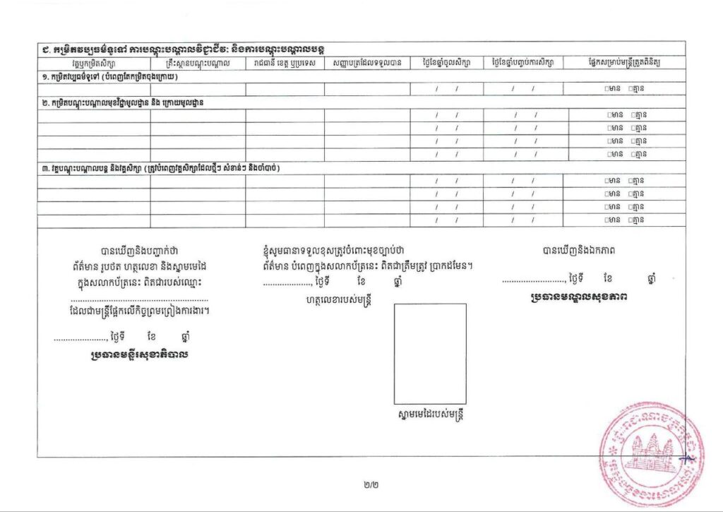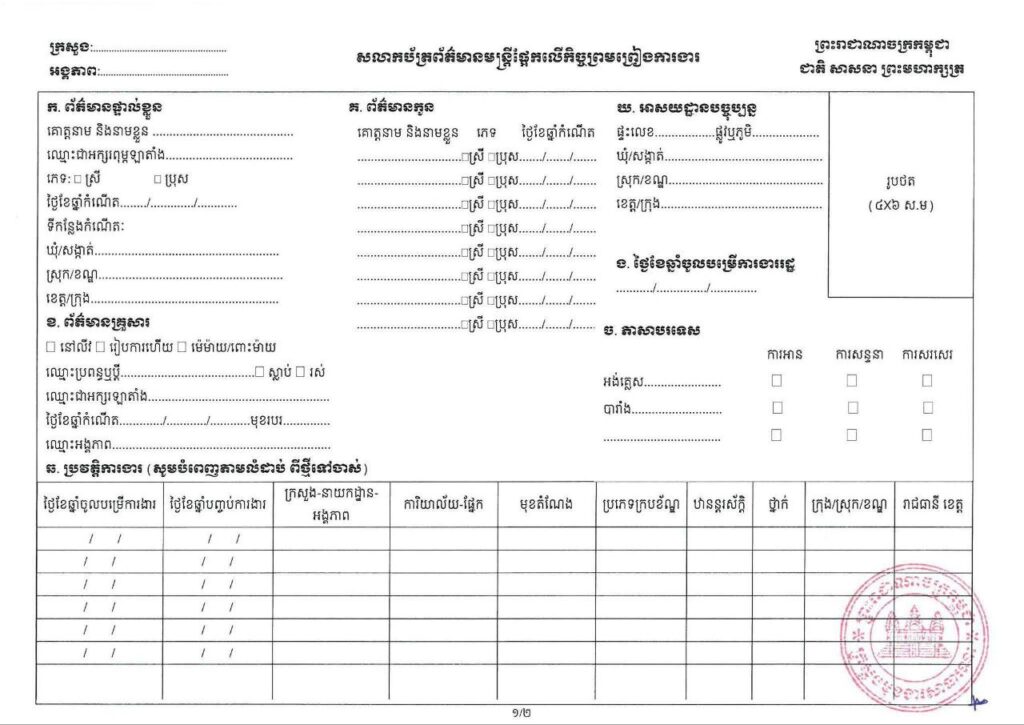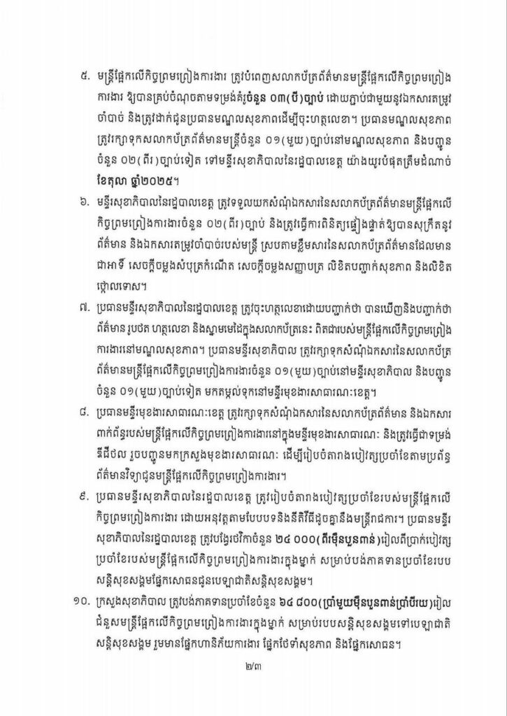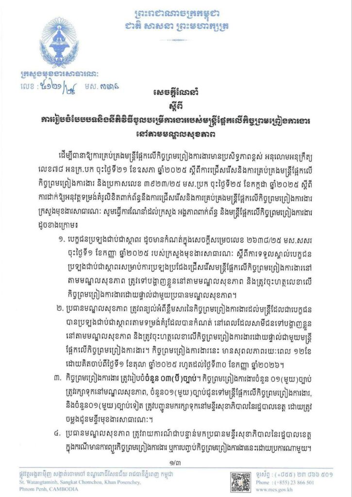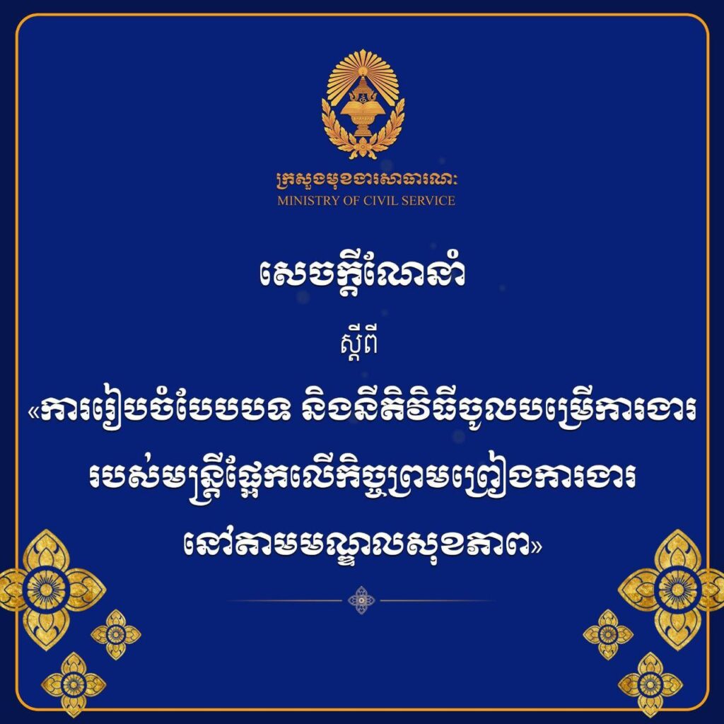ក្រសួងមុខងារសាធារណៈ សូមជូនសេចក្តីណែនាំស្តីពី «ការរៀបចំបែបបទ និងនីតិវិធីចូលបម្រើការងាររបស់មន្ត្រីផ្អែកលើកិច្ចព្រមព្រៀងការងារនៅតាមមណ្ឌលសុខភាព»