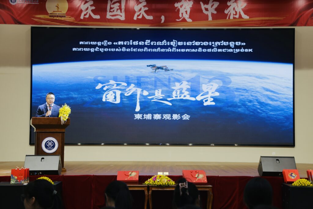 (ភ្នំពេញ)៖ ភាពយន្តឯកសារលំហអាកាសកម្រិត 8K Ultra HDដំបូងគេរបស់ប្រទេសចិន ដែលផលិតដោយ អគ្គស្ថានីយវិទ្យុ និងទូរទស្សន៍មជ្ឈិមចិន មានចំណងជើងថា “ភពផែនដីពណ៌ខៀវនៅខាងក្រៅបង្អួច”ត្រូវបានចាក់បញ្ចាំងជាសាធារណៈហើយកាលពីរសៀលថ្ងៃទី១ ខែតុលា ឆ្នាំ២០២៥ នៅក្នុងសាកលវិទ្យាល័យបច្ចេកវិទ្យា និងវិទ្យាសាស្ត្រកម្ពុជា-ចិន ដោយមានអ្នកចូលរួមទស្សនាដោយផ្ទាល់ជាង៤០០នាក់ភាគច្រើនជាសិស្ស និងនិស្សិតមកពីសាកលវិទ្យាល័យផ្សេងៗ។