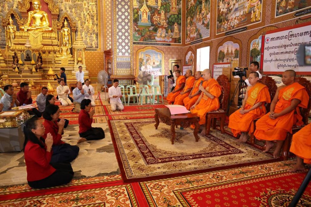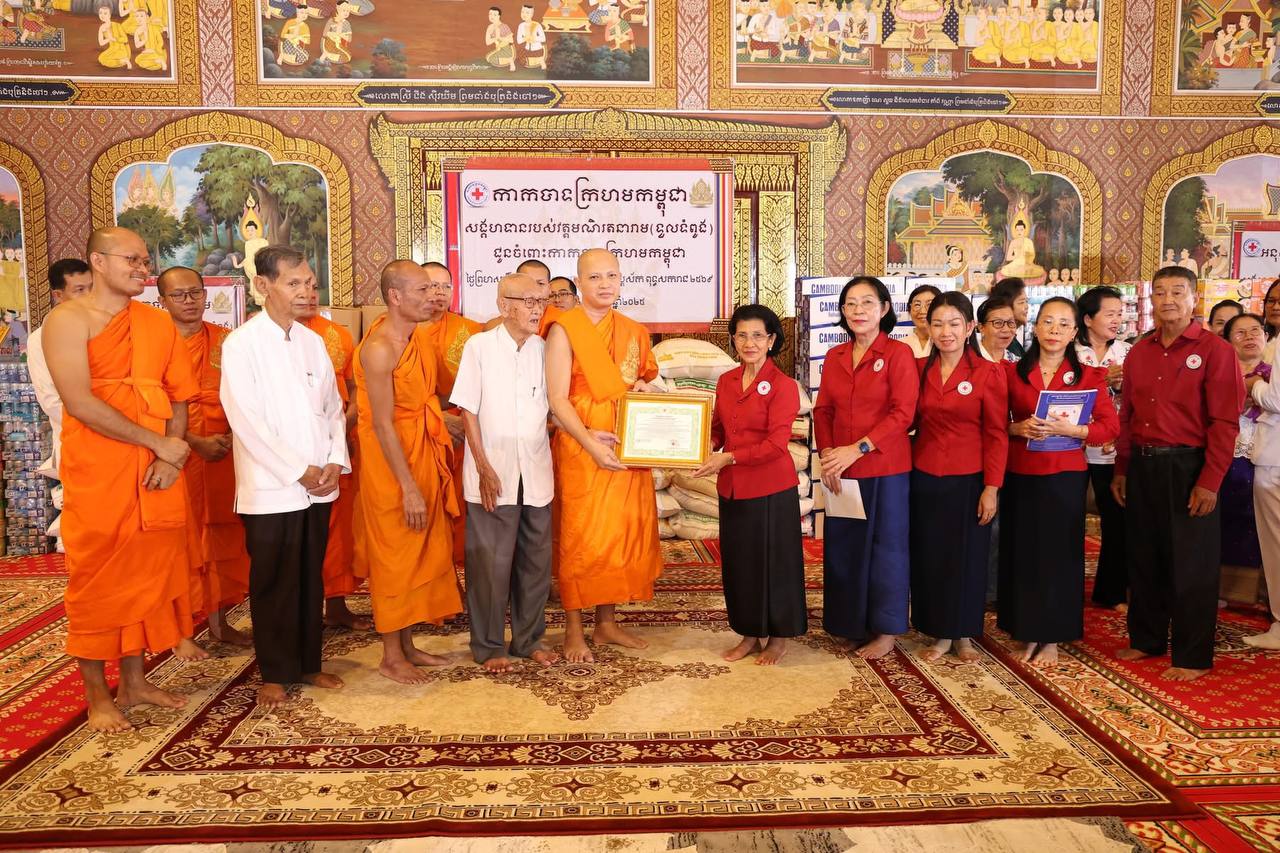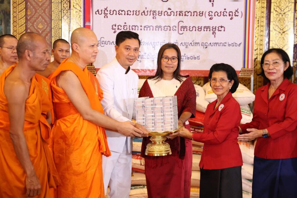 ព្រះចៅអធិការវត្តវត្តទួលទំពូង ប្រគេនទេយ្យទានដល់កាកបាទក្រហកម្ពុជា រួមចំណែកការងារមនុស្សធម៌