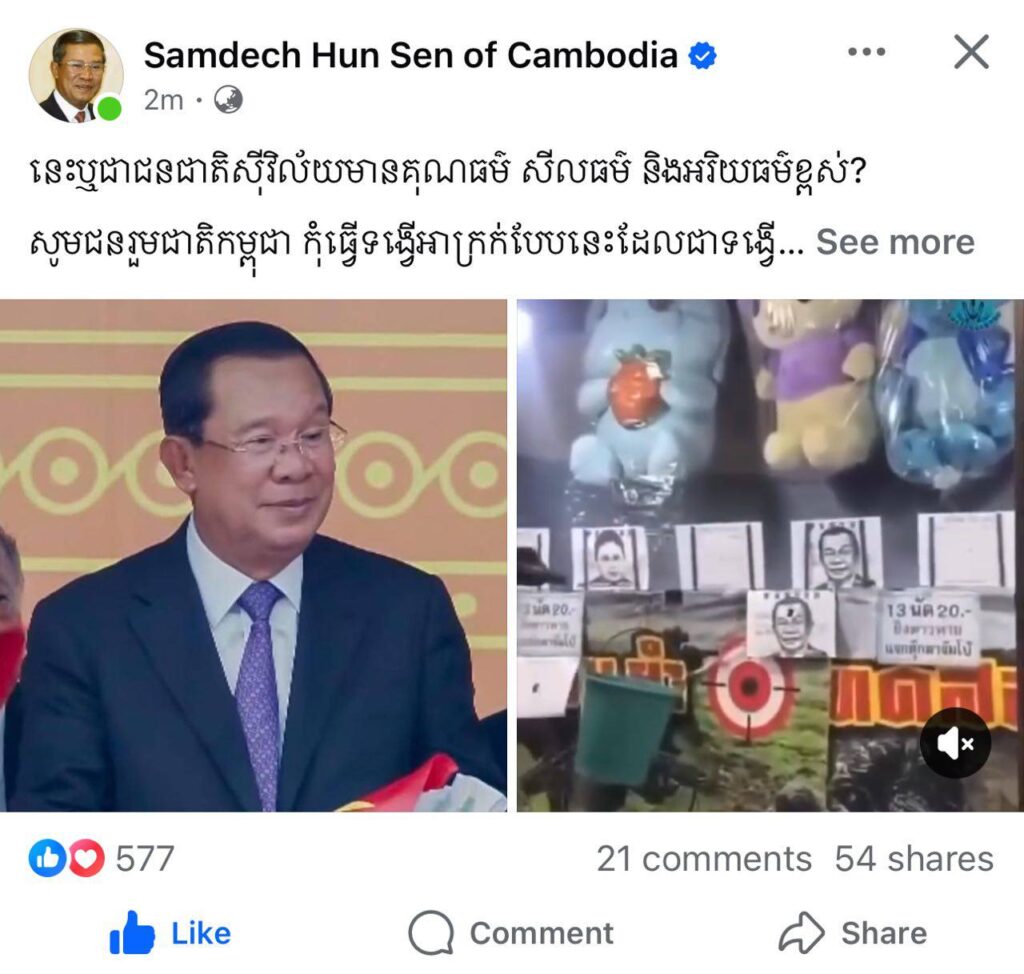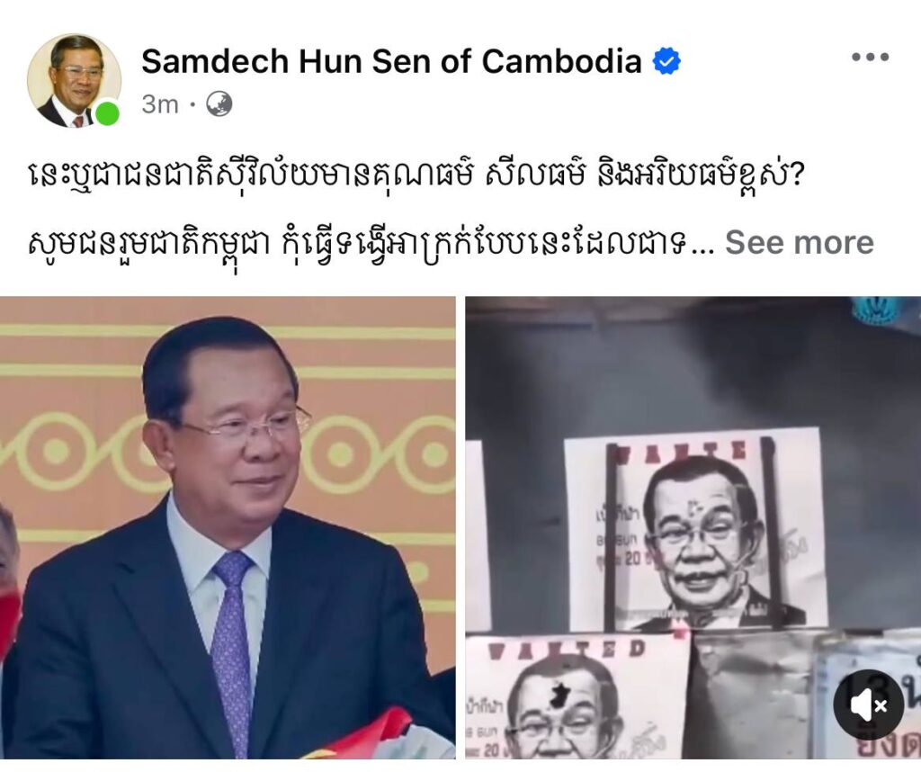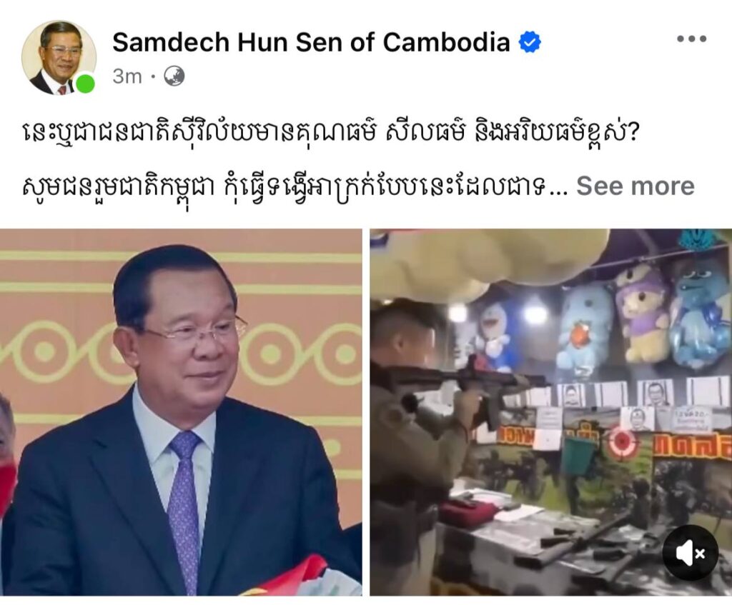 នៅលើបណ្ដាញសង្គម សម្ដេចតេជិ បានបង្ហោះឃ្លីប អមដោយសំណេរថា នេះឬជាជនជាតិស៉ីវិល័យមានគុណធម៌ សីលធម៌ និងអរិយធម៌ខ្ពស់?