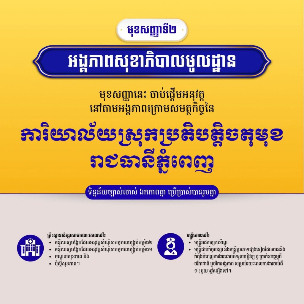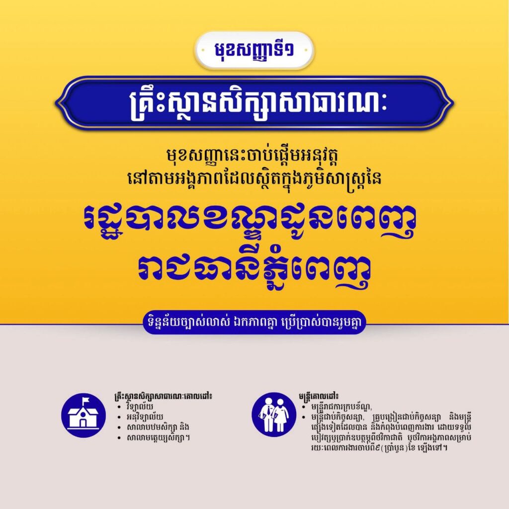 (ភ្នំពេញ)៖ គណៈកម្មការធ្វើបច្ចុប្បន្នភាពរចនាសម្ព័ន្ធ និងជំរឿនមន្ត្រីជាក់ស្តែង នឹងចាប់ផ្តើមអនុវត្តនៅតាមមុខសញ្ញាគោលដៅចំនួន៣ ផ្សេងគ្នា៖ មុខសញ្ញាទី១.គ្រឹះស្ថានសិក្សាសាធារណៈ ដោយចាប់ផ្តើមនៅតាមអង្គភាពដែលស្ថិតក្នុងភូមិសាស្ត្រនៃរដ្ឋបាលខណ្ឌដូនពេញ រាជធានីភ្នំពេញ, មុខសញ្ញាទី២.អង្គភាពសុខាភិបាលមូលដ្ឋាន ដោយចាប់ផ្តើមនៅតាមអង្គភាពក្រោមសមត្ថកិច្ចនៃការិយាល័យស្រុកប្រតិបត្តិចតុមុខ រាជធានីភ្នំពេញ និង មុខសញ្ញាទី៣.ចាប់ផ្តើមអនុវត្តនៅក្រសួងមុខងារសាធារណៈ។