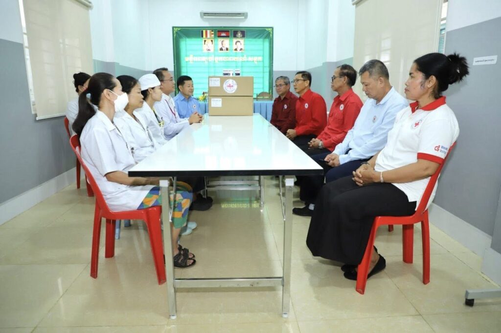 តបតាមអនុសាសន៍ណែនាំដ៏ខ្ពង់ខ្ពស់ពីសម្តេចកិត្តិព្រឹទ្ធបណ្ឌិត ប៊ុន រ៉ានី ហ៊ុនសែន ប្រធានកាកបាទក្រហមកម្ពុជា នៅរសៀលថ្ងៃទី៦ ខែតុលា ឆ្នាំ២០២៥ ឯកឧត្តម សុខ ឡុង នាយកនាយកដ្ឋានសុខភាព កាកបាទក្រហមកម្ពុជា និងសហការី រួមជាមួយថ្នាក់ដឹកនាំ មន្ត្រីប្រតិបត្តិសាខាកាកបាទក្រហមកម្ពុជា ខេត្តកំពង់ធំ ព្រមទាំងថ្នាក់ដឹកនាំមន្ទីរសុខាភិបាលខេត្តកំពង់ធំ បានអញ្ជើញនាំយកថ្នាំពេទ្យបញ្ចុះកម្តៅ និងព្យាបាលផ្តាសាយប្រភេទ ACETA-SANT 500 ជូនមន្ទីរពេទ្យបង្អែកស្រុកបារាយណ៍-សន្ទុក ២កេស( ស្មើនឹង ១៩.២០០គ្រាប់) និងមណ្ឌលសុខភាពកំពង់ថ្ម ២កេស ( ស្មើនឹង ១៩.២០០គ្រាប់) សម្រាប់ចាត់ចែងបន្តដល់ មន្ទីរពេទ្យបង្អែក មណ្ឌលសុខភាព និងប៉ុស្តិ៍សុខភាពនីមួយៗ ដើម្បីសម្រួលសេវាព្យាបាលជូនអ្នកជំងឺដែលមានជីវភាពខ្វះខាត ។