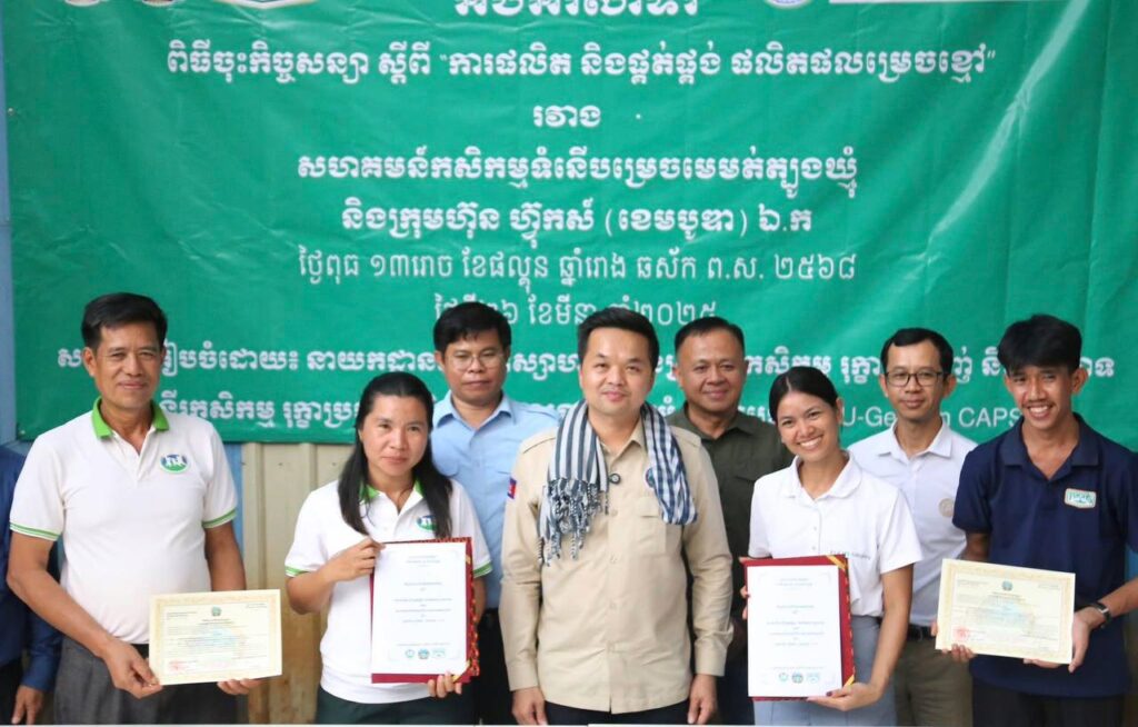 គួរបញ្ជាក់ថា នៅថ្ងៃទី៧ ខែ តុលា ឆ្នាំ២០២៥នេះ ឯកឧត្តម ឃឹម ហ្វីណង់ អ្នកនាំពាក្យក្រសួងកសិកម្មបានបង្ហាញការអបអរសាទរដល់សហគមន៍កសិកម្មទំនើប ផងដែរ ពោលគឺក្រោយសម្របសម្រួលរបស់ក្រសួងកសិកម្ម រុក្ខាប្រមាញ់ និង នេសាទ ក្រុមហ៊ុន វីរៈ ប៊ុនថាំ បានចុះកិច្ចសន្យាទិញស្រូវស្រង៉ែជាង ៣០០០០តោន ពីសហគមន៍កសិកម្មទំនើបចំនួន៦ នៅក្នុងខេត្តបាត់ដំបង និងខេត្តបន្ទាយមានជ័យ ក្នុងតម្លៃចន្លោះពី៩៥០៛-១០៥០៛ ក្នុងមួយគីឡូក្រាមទៀតផង៕