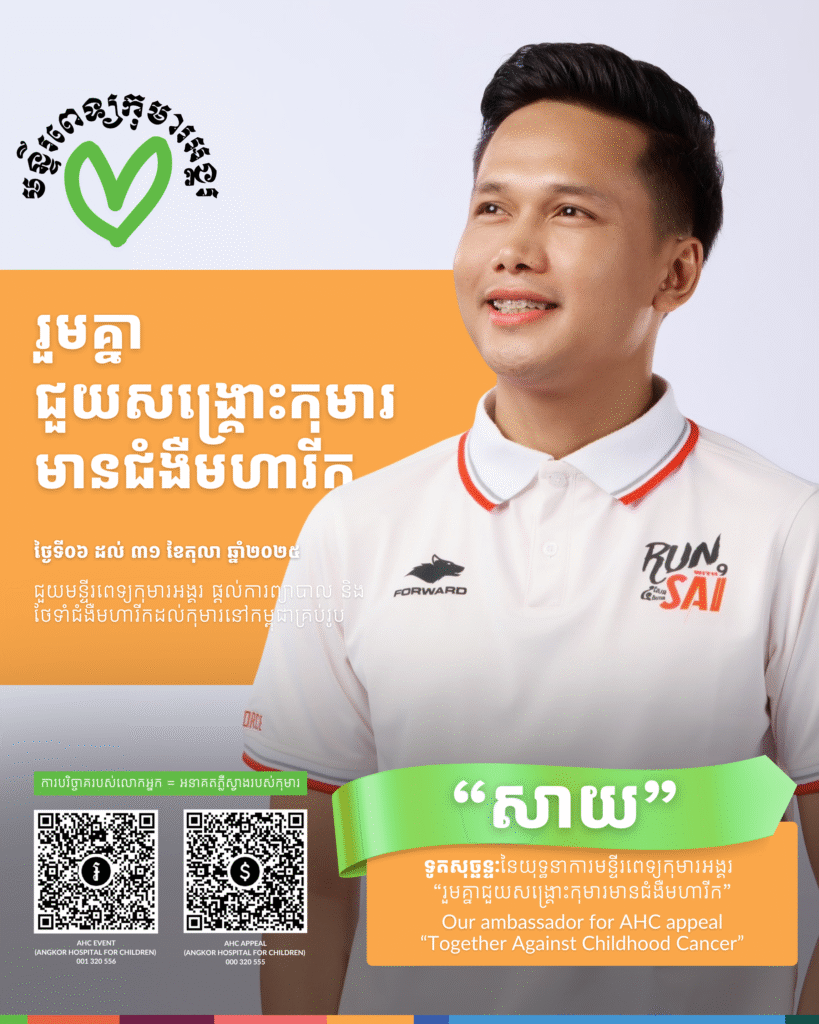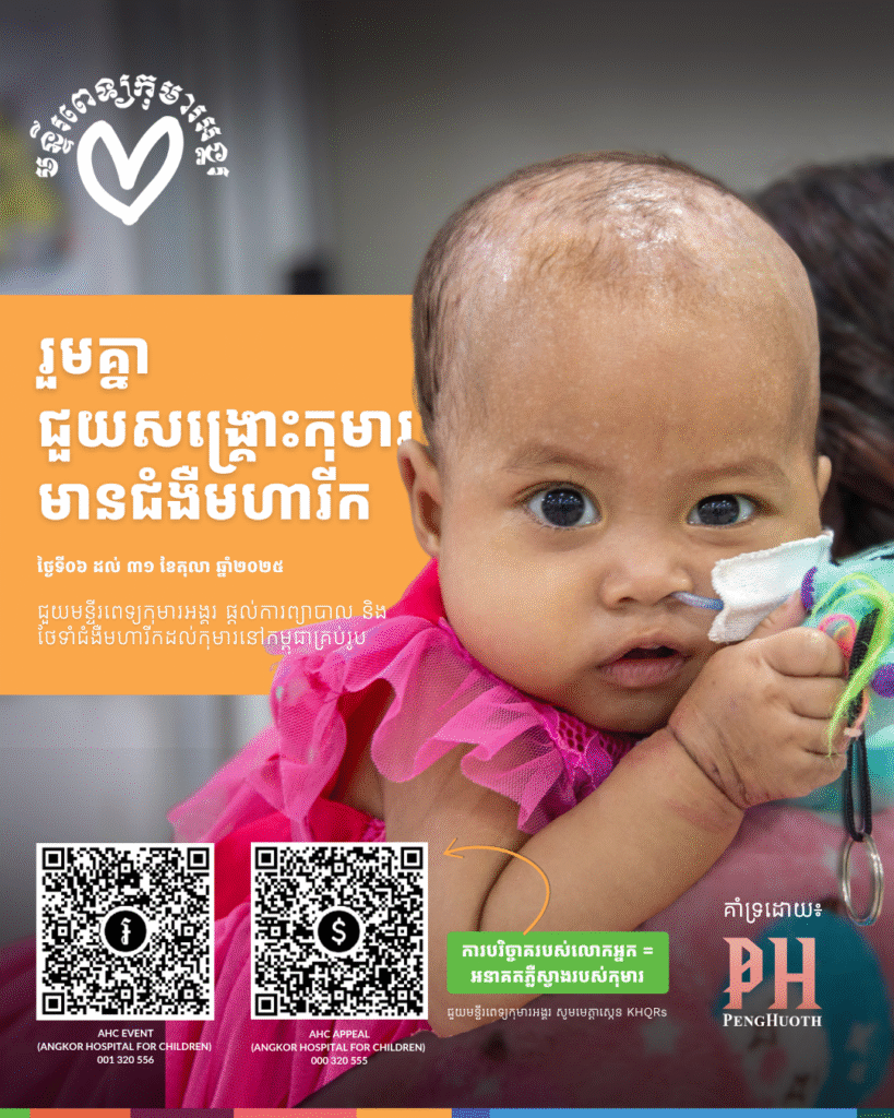 មន្ទីរពេទ្យកុមារអង្គរ (Angkor Hospital for Children) ជាអង្គភាពមិនស្វែងរកប្រាក់ចំណេញ ផ្តល់សេវាថែទាំសុខភាពកុមារឈានមុខមួយប្រកបដោយគុណភាពខ្ពស់ ក្តីមេត្តាករុណា និងមិនគិតកម្រៃសម្រាប់អ្នកគ្មានលទ្ធភាព ។ យុទ្ធនាការ “រួមគ្នាជួយសង្គ្រោះកុមារមានជំងឺមហារីក” បានចាប់ផ្តើមបើកដំណើរការ ចាប់ពីថ្ងៃទី៦ ដល់ថ្ងៃទី៣១ ខែតុលា ឆ្នាំ២០២៥ ក្នុងគោលដៅ រៃអង្គាសថវិកាដើម្បីបំពេញនូវកង្វះខាតថវិកាមន្ទីរពេទ្យកុមារអង្គរចំនួន ២០ម៉ឺនដុល្លារអាមេរិក ដែលអាចប៉ះពាល់ដល់មន្ទីរពេទ្យកុមារអង្គរ ដើម្បីបន្តផ្តល់ការព្យាបាល និងថែទាំសង្គ្រោះអាយុជីវិតរហូតដល់ដំណាច់ឆ្នាំនេះ។