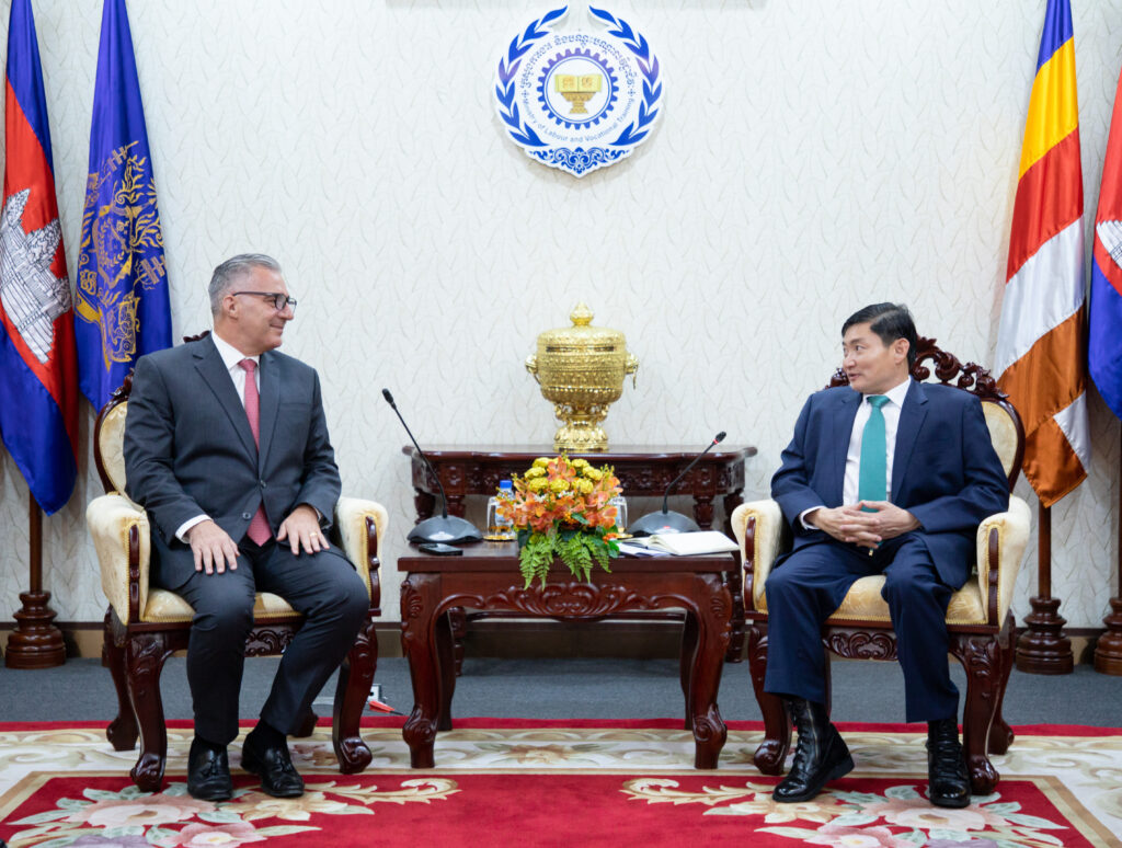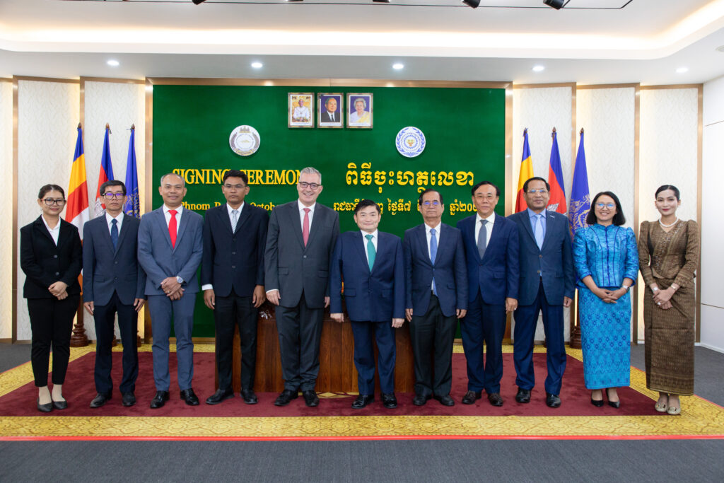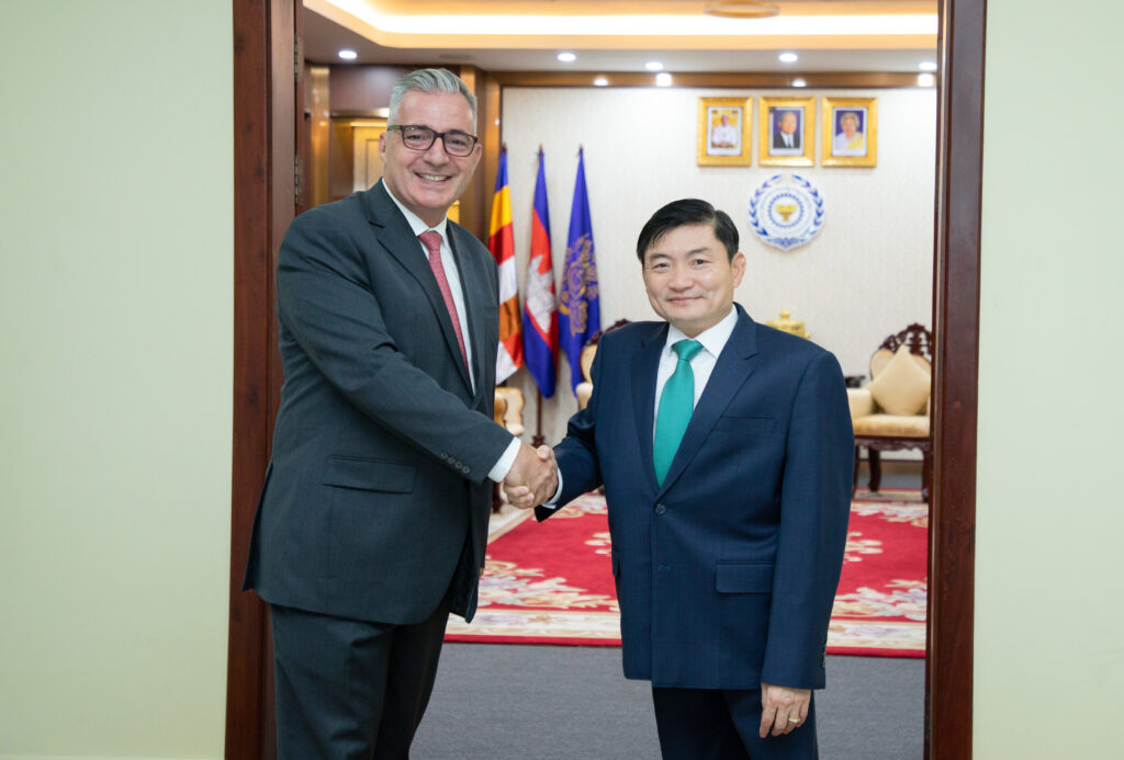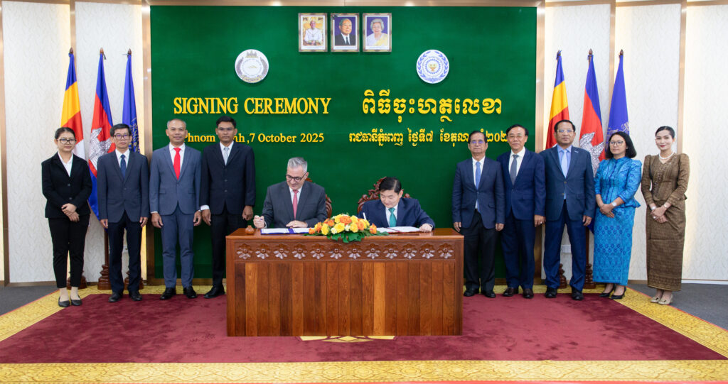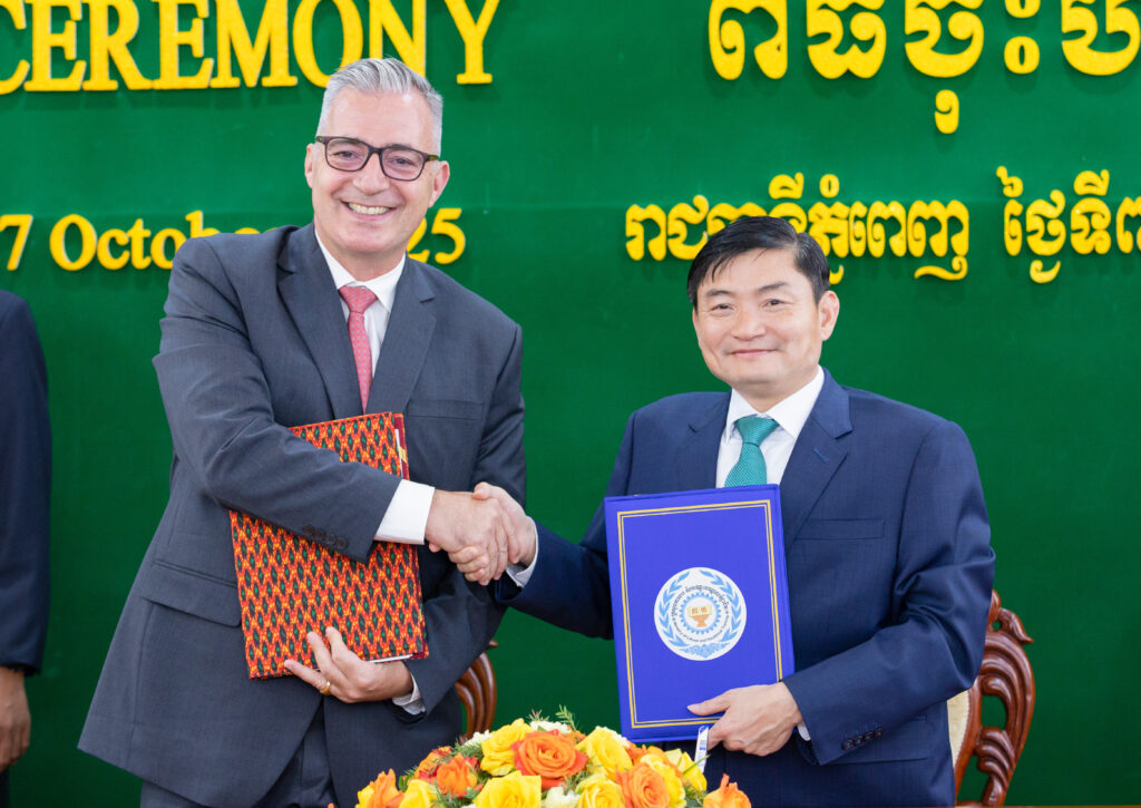 (ភ្នំពេញ)៖ ឯកឧត្តម ហេង សួរ រដ្ឋមន្រ្តីក្រសួងការងារ និងបណ្តុះបណ្តាលវិជ្ជាជីវៈ និងលោក ហ្វ្រាង់ស្វ័រ ស្លូបេលែន នាយកសាលាសណ្ឋាគារ និងទេសចរណ៍ ប៉ូល ឌុយប្រ៊ូល តំណាងអង្គការបណ្តុះបណ្តាល និងវឌ្ឍនភាពកម្ពុជា (ONG Formation Et Progres Cambodge) បានចុះហត្ថលេខាលើកិច្ចព្រមព្រៀងគម្រោង ស្តីពីសាលាសណ្ឋាគារ និងទេសចរណ៍ ប៉ូល ឌុយប្រ៊ូល កាលពីរសៀលថ្ងៃទី៧ ខែតុលា ឆ្នាំ២០២៥ នៅទីស្តីការក្រសួង ដើម្បីជំរុញការបណ្តុះបណ្តាលជំនាញវិជ្ជាជីវៈផ្នែកបដិសណ្ឋារកិច្ច និងទេសចរណ៍។