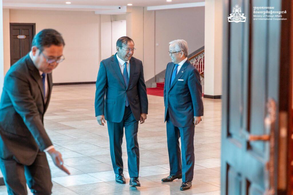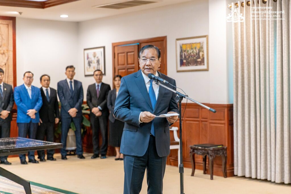 ពិធីចុះហត្ថលេខាលើលិខិតប្តូរសារ និងឯកសារពាក់ព័ន្ធ ស្តីពីការផ្តល់ឥណទានសម្បទានចំនួន ៤៤.៤៣៧លានយ៉េន ស្មើនឹង ២៩៦លាន ២សែន ដុល្លាអាម៉េរិក បានធ្វើឡើងរវាង ឯកឧត្តមឧបនាយករដ្ឋមន្ត្រី ប្រាក់ សុខុន រដ្ឋមន្ត្រីការបរទេស និងសហប្រតិបត្តិការអន្តរជាតិ និងឯកឧត្តម UENO Atsushi ឯកអគ្គរាជទូតជប៉ុន ប្រចាំកម្ពុជា នៅព្រឹកថ្ងៃទី៨ ខែតុលា ឆ្នាំ ២០២៥ នៅទីស្តីការក្រសួង ។