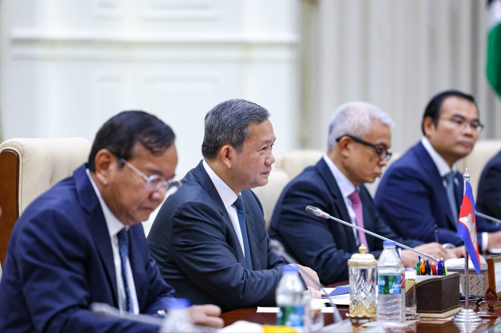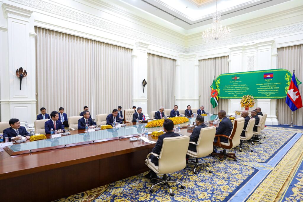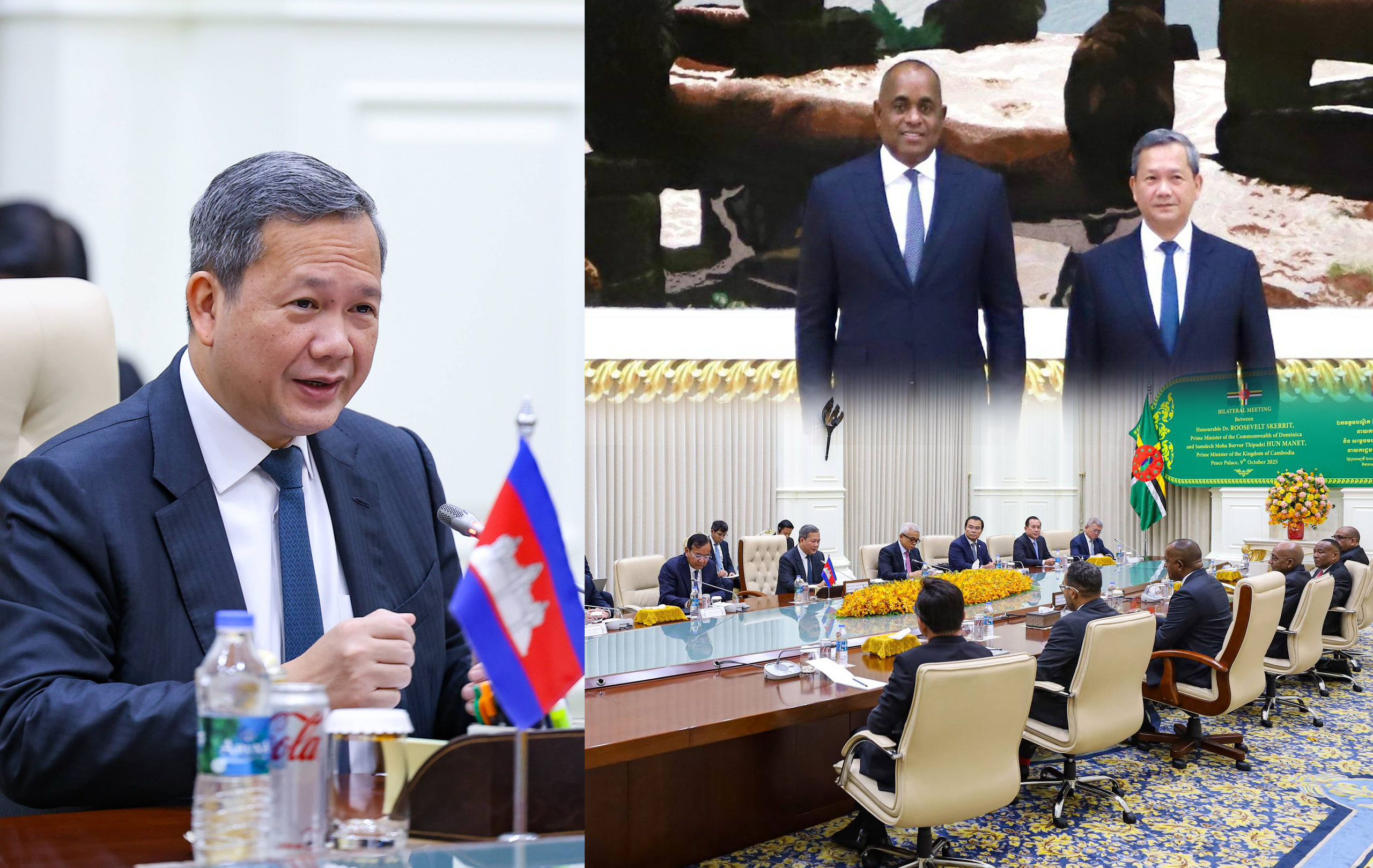 (ភ្នំពេញ)៖ សម្តេចមហាបវរធិបតី ហ៊ុន ម៉ាណែត នាយករដ្ឋមន្ត្រី នៃព្រះរាជាណាចក្រកម្ពុជា ទទួលជួបពិភាក្សាការងារទ្វេភាគីជាមួយ ឯកឧត្តមបណ្ឌិត Roosevelt Skerrit នាយករដ្ឋមន្ត្រីនៃកុំមិនវែលដូមីនីកា នាព្រឹកថ្ងៃទី០៩ ខែតុលា ឆ្នាំ២០២៥ នៅវិមានសន្តិភាព រាជធានីភ្នំពេញ ក្នុងឱកាសដែលឯកឧត្តមអញ្ជើញមកបំពេញទស្សនកិច្ចការងារ រយៈពេល៣ថ្ងៃ នៅព្រះរាជាណាចក្រកម្ពុជា ។