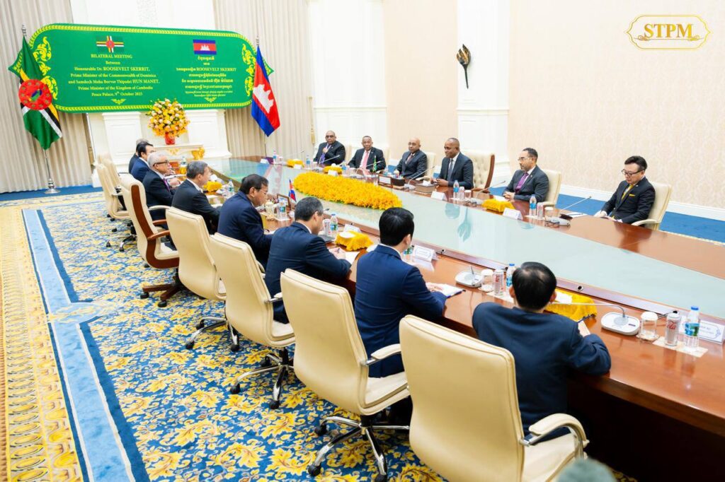 សម្តេចធិបតី ហ៊ុន ម៉ាណែត ទទួលជួបពិភាក្សាការងារទ្វេភាគីជាមួយនាយករដ្ឋមន្ត្រីនៃកុំមិនវែលដូមីនីកា នៅវិមានសន្តិភាព
