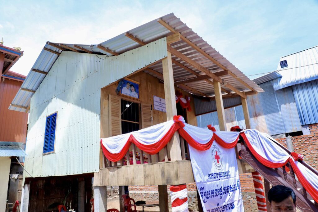 ជាកាដូសម្រាប់ផ្ទះថ្មីសាខាកាកបាទក្រហមខេត្តកំពង់ចាមបានផ្តល់ជូនលោក ផេន ស៊ាងផេង និងក្រុមគ្រួសារមាន អង្ករ មី គ្រឿងឧបភោគ បរិភោគ ឃីតពីរសម្រាប់ សម្ភារផ្ទះបាយ សម្ភារដំណេក និងថវិកាចំនួនពីរសែនរៀល ។