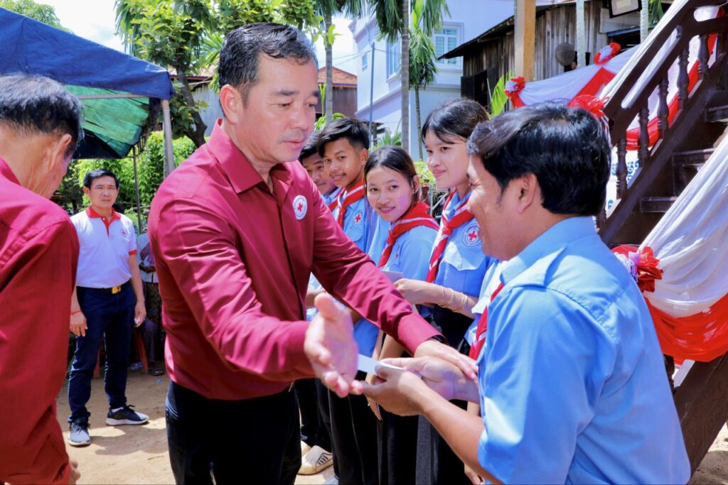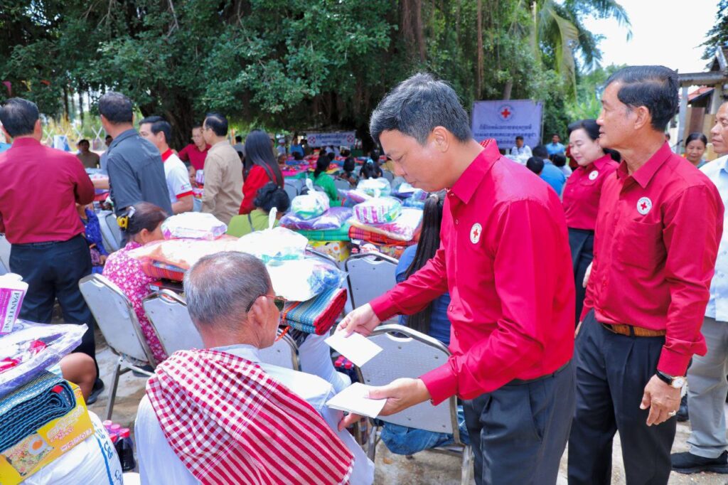 កំពង់ចាម៖ ឯកឧត្តម អ៊ុន ចាន់ដា អភិបាលខេត្តកំពង់ចាម និងជាប្រធានគណ:កម្មាធិការសាខាកាបាទក្រហមកម្ពុជាខេត្ត ,ព្រះសីលសំវរ ប៊ត តាំងឆេង ព្រះនាគមុនីព្រះមេគណខេត្តកំពង់ចាមកាលពីថ្ងៃទី៩ តុលា ឆ្នាំ២០២៥ បានអញ្ជើញនិងនិមន្តប្រគល់ផ្ទះមនុស្សធម៌មួយខ្នងរួមជាមួយបន្ទប់ទឹកមួយខ្នង ពីរបន្ទប់ជូនលោក ផេន ស៊ាង ផេង អាយុ ៤៨ឆ្នាំ ជាបុរសពោះម៉ាយគ្មានទីពឹង រស់នៅក្នុងភូមិហាន់ជ័យ ឃុំហាន់ជ័យ ស្រុកកំពង់សៀម ។