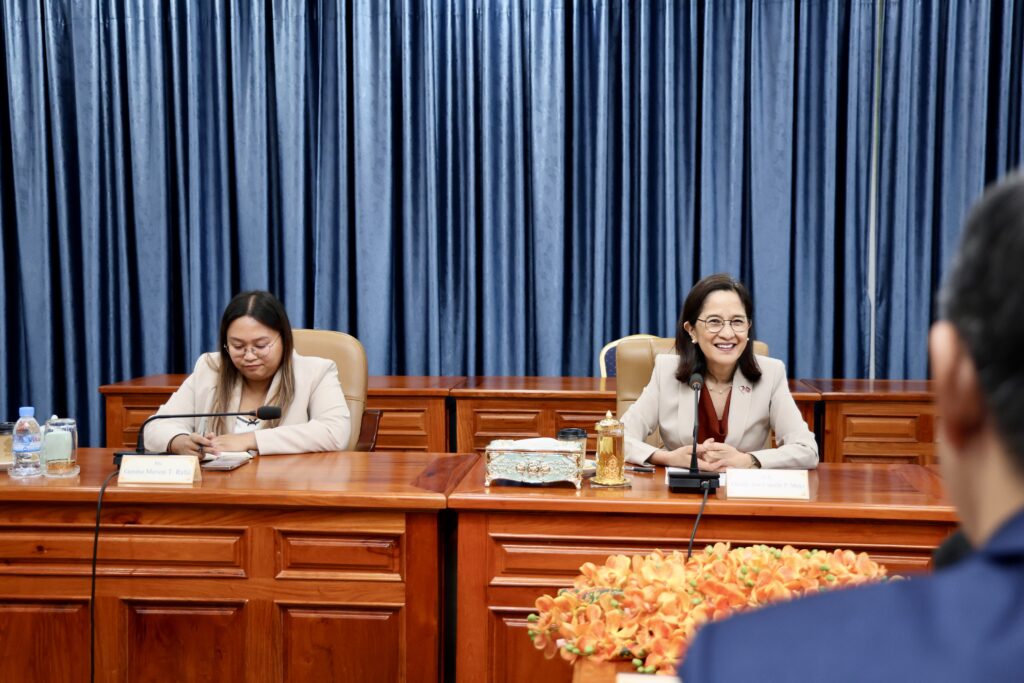 (ភ្នំពេញ)៖ ឯកឧត្តមបណ្ឌិត ធន់ វឌ្ឍនា អនុប្រធានទី២ ព្រឹទ្ធសភា បានទទួលជួបពិភាក្សាការងារជាមួយលោកជំទាវ Flerida Ann Camille P.Mayo ឯកអគ្គរដ្ឋទូតហ្វ៊ីលីពីន ប្រចាំនៅព្រះរាជាណាចក្រកម្ពុជា នៅព្រឹកថ្ងៃទី១០ ខែតុលា ឆ្នាំ២០២៥ នៅសាលពិសេស៣ វិមានព្រឹទ្ធសភា ដើម្បីបង្កើនកិច្ចសហប្រតិបត្តិការ លើវិស័យសភា កសិកម្ម អប់រំ ពាណិជ្ជកម្ម និងបច្ចេកវិទ្យា ។