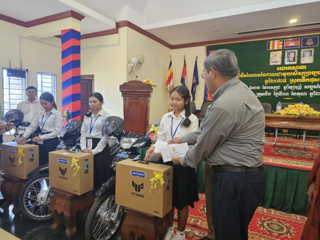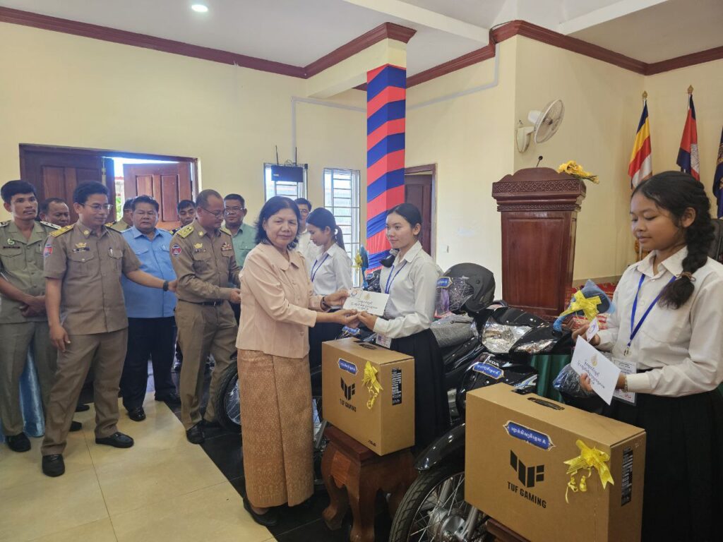 ព្រះធម្មវនរាសី ចន្ទ មុនី ផ្តល់ម៉ូតូ និងកុំព្យូទ័រដល់សិស្សនិទ្ទេសA នៅស្រុកទឹកផុស