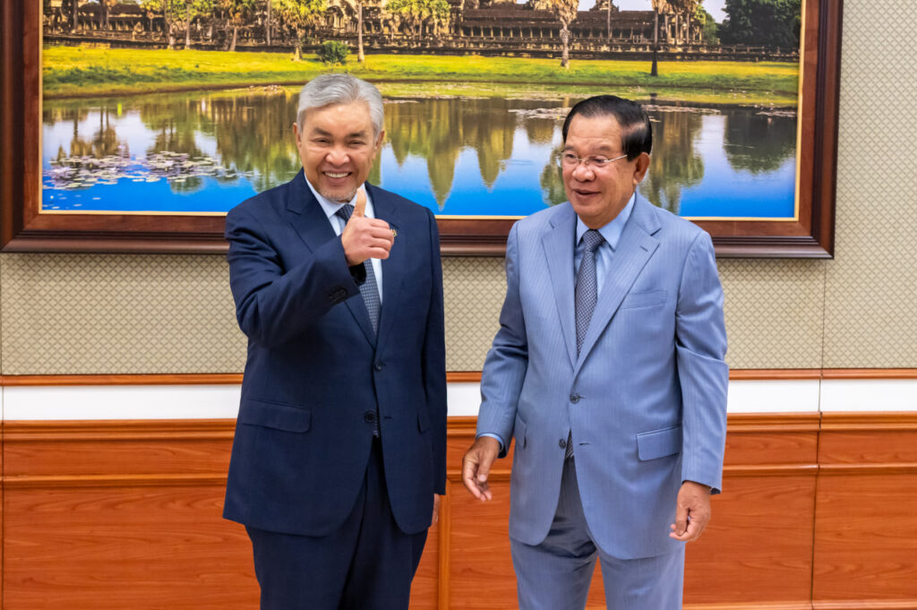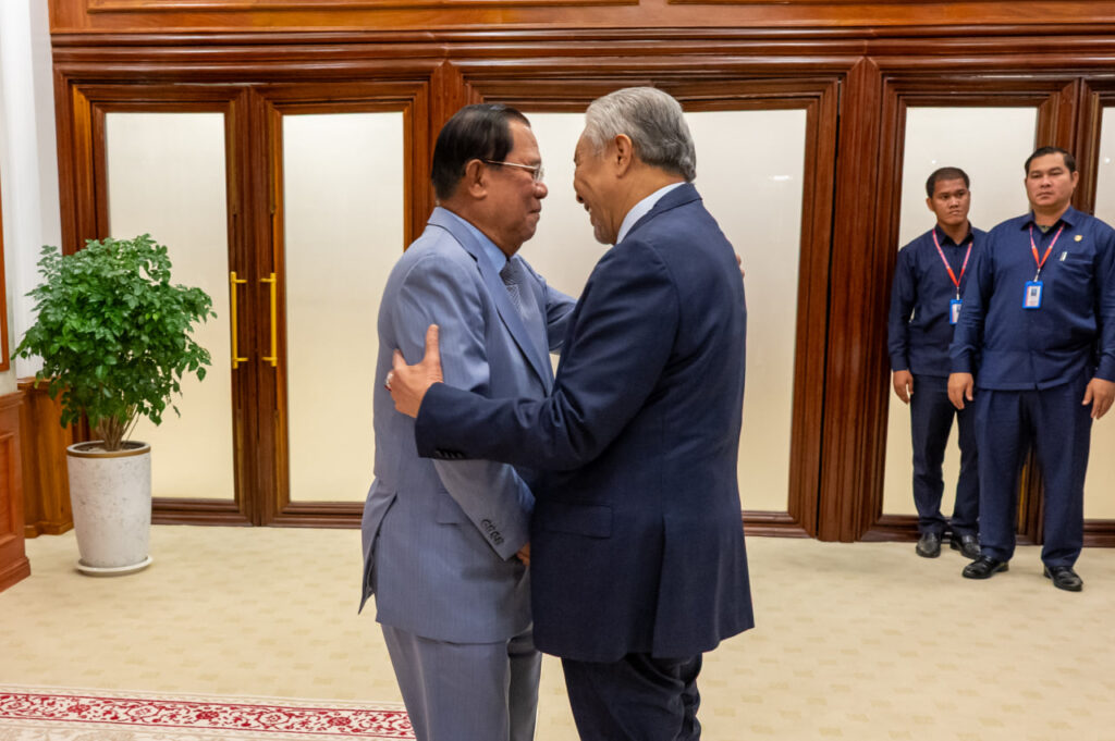 ទាក់ទងទៅនឹងបញ្ហាព្រំដែនរវាងកម្ពុជានិងថៃ សម្ដេចតេជោ បានពន្យល់ទៅកាន់ ឯកឧត្តម ឧបនាយករដ្ឋមន្ត្រីម៉ាឡេស៊ី អំពីស្ថានភាពនៃបញ្ហាព្រំដែន រួមទាំងបច្ចុប្បន្នភាពទាក់ទងទៅនឹងការចាក់សំឡេងខ្មោច ឬក៏សំឡេងផ្សេងៗទៀត ពីភាគីថៃ រំខានដល់ពលរដ្ឋកម្ពុជានៅក្នុងភូមិជោគជ័យ និងភូមិព្រៃចាន់ ជាដើម ដែលបានកើតឡើងរយៈពេលប្រមាណ ៤យប់មកហើយ ។ សម្ដេចតេជោ ក៏បានបញ្ជាក់បន្ថែមពីស្ថានភាពទូទៅនៃបញ្ហាព្រំដែន ដែលជាកង្វល់ និងជាបញ្ហាមួយផុយស្រួយខ្លាំងណាស់ក្នុងការប៉ះទង្គិចគ្នាឡើងវិញ ។ ដូច្នេះហើយ សម្ដេចតេជោ ក៏បានបញ្ជាក់ទៅកាន់ឯកឧត្តមឧបនាយករដ្ឋមន្ត្រីថា អ្វីដែលកម្ពុជាចង់បាន គឺមិនត្រូវការឲ្យប្រទេសណាមួយ សម្ព័ន្ធមិត្ត ឬក៏មិត្តរបស់កម្ពុជា ទៅថ្កល់ទោសប្រទេសណាទេ ប៉ុន្តែអ្វីដែលកម្ពុជា ចង់បាន គឺការធ្វើយ៉ាងណា ជំរុញឲ្យភាគីទាំងពីរ គោរពបទឈប់បាញ់ឲ្យមានប្រសិទ្ធភាព និងការស្វែងរកដំណោះស្រាយ ដើម្បីឈានទៅរកប្រក្រតីភាព នៃទំនាក់ទំនងរវាងកម្ពុជា និងថៃ ឡើងវិញ ។