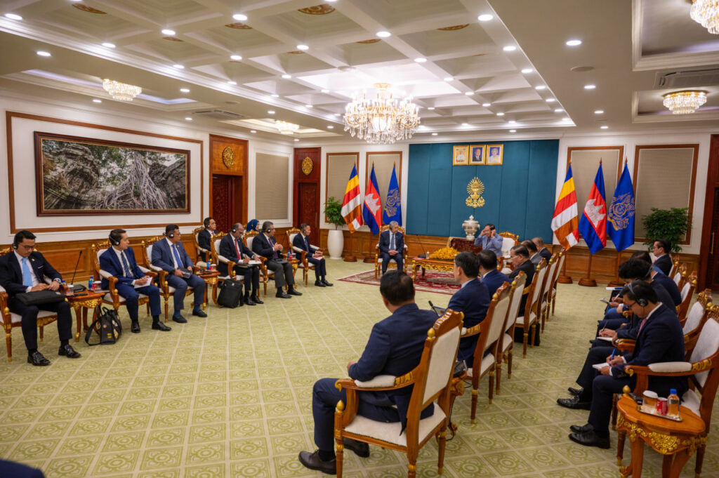 ជាការឆ្លើយតប សម្ដេចតេជោ ហ៊ុន សែន បានឯកភាពចំពោះការលើកឡើងរបស់ឯកឧត្តមឧបនាយករដ្ឋមន្ត្រី និងជារដ្ឋមន្ត្រីក្រសួងអភិវឌ្ឍន៍តំបន់ និងជនបទ នៃសហព័ន្ធម៉ាឡេស៊ី ចំពោះការពង្រីកទំនាក់ទំនងទ្វេភាគីរវាងកម្ពុជា និងម៉ាឡេស៊ី ឲ្យកាន់តែរីកចម្រើន ។ សម្ដេចតេជោ បានកត់សម្គាល់ថា ដើម្បីឲ្យទំនាក់ទំនងរវាងប្រទេសទាំងពីរ ដើរទៅស្របគ្នាទាំងសេដ្ឋកិច្ច និងនយោបាយ ការពង្រីកនូវទំនាក់ទំនងសេដ្ឋកិច្ច ពាណិជ្ជកម្ម ការវិនិយោគ ទេសចរណ៍ រវាងកម្ពុជា និងម៉ាឡេស៊ី ត្រូវតែធ្វើយ៉ាងណា ឲ្យមានភាពរីកចម្រើនដូចគ្នាដែរ ។ សម្ដេចតេជោ ក៏បានកត់សម្គាល់ដែរថា ពាណិជ្ជកម្មរវាងកម្ពុជា និងម៉ាឡេស៊ី មានការកើនឡើង ប៉ុន្តែសម្ដេច ចង់ជំរុញឲ្យរដ្ឋាភិបាលប្រទេសទាំងពីរ ធ្វើយ៉ាងណា ជំរុញទំហំពាណិជ្ជកម្មរវាងប្រទេសទាំងពីរឲ្យមានការកើនឡើងបន្ថែមទៀត ។