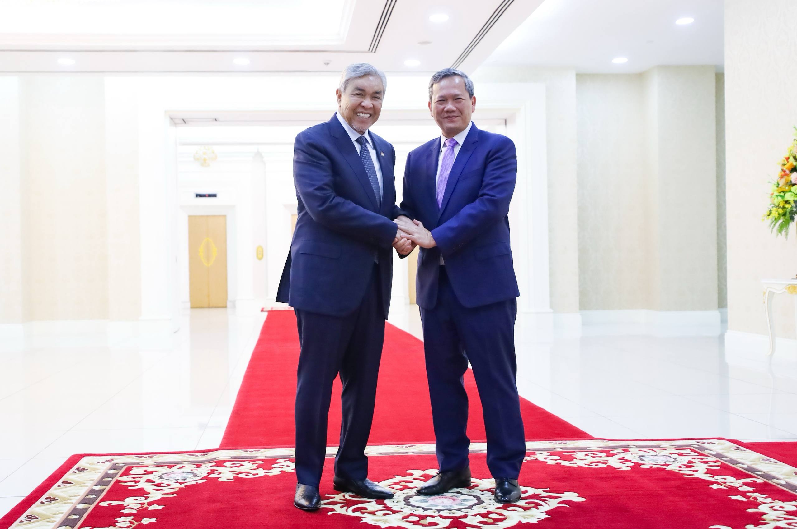 (ភ្នំពេញ)៖ ឧបនាយករដ្ឋមន្ត្រីម៉ាឡេស៊ី បានគូសបញ្ជាក់ការបន្តគាំទ្រ កិច្ចសហប្រតិបត្តិការជាមួយកម្ពុជា ។ នេះបើតាមលទ្ធផលនៃជំនួបរវាង សម្តេចមហាបវរធិបតី ហ៊ុន ម៉ាណែត នាយករដ្ឋមន្ត្រីនៃព្រះរាជាណាចក្រកម្ពុជា ដែលបានអនុញ្ញាតឱ្យឯកឧត្តម Dato’ Sri Dr. Ahmad Zahid Hamidi ឧបនាយករដ្ឋមន្ត្រី និងជារដ្ឋមន្ត្រីក្រសួងអភិវឌ្ឍន៍ជនបទ និងតំបន់ នៃប្រទេសម៉ាឡេស៊ី ចូលជួបសម្ដែងការគួរសម និងពិភាក្សាការងារ នៅវិមានសន្ដិភាព នាព្រឹក ថ្ងៃទី១៤ ខែតុលា ឆ្នាំ២០២៥ ។