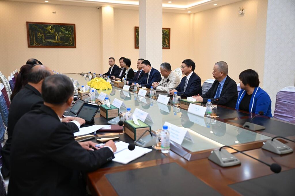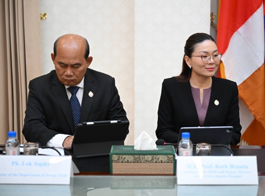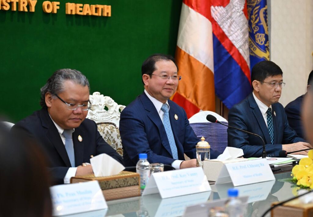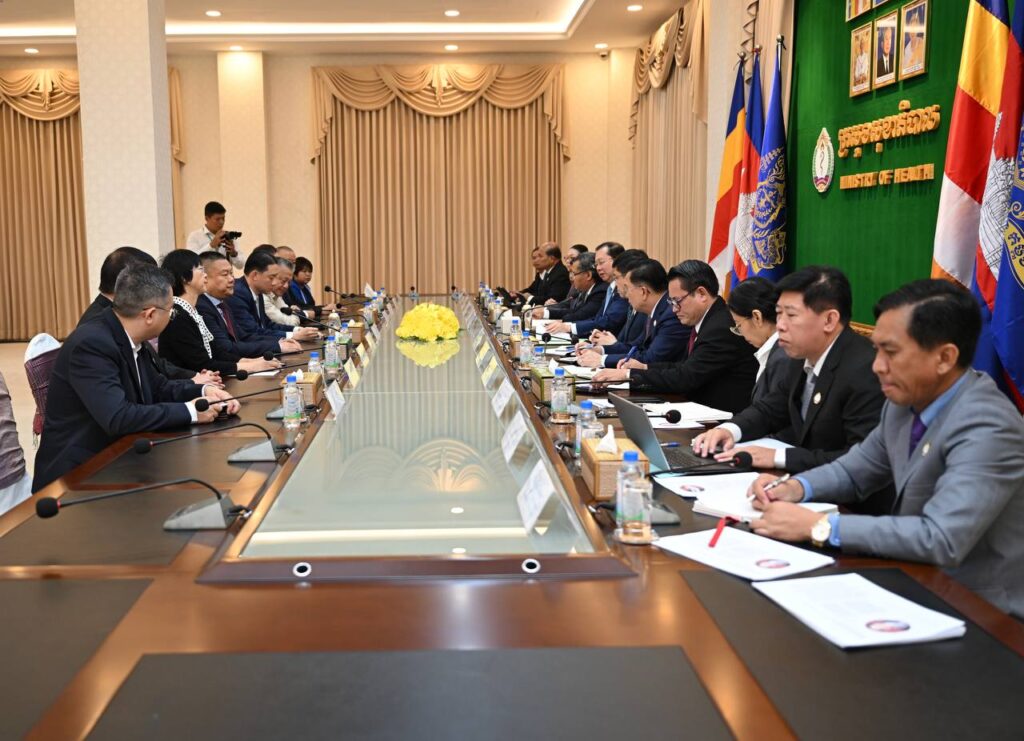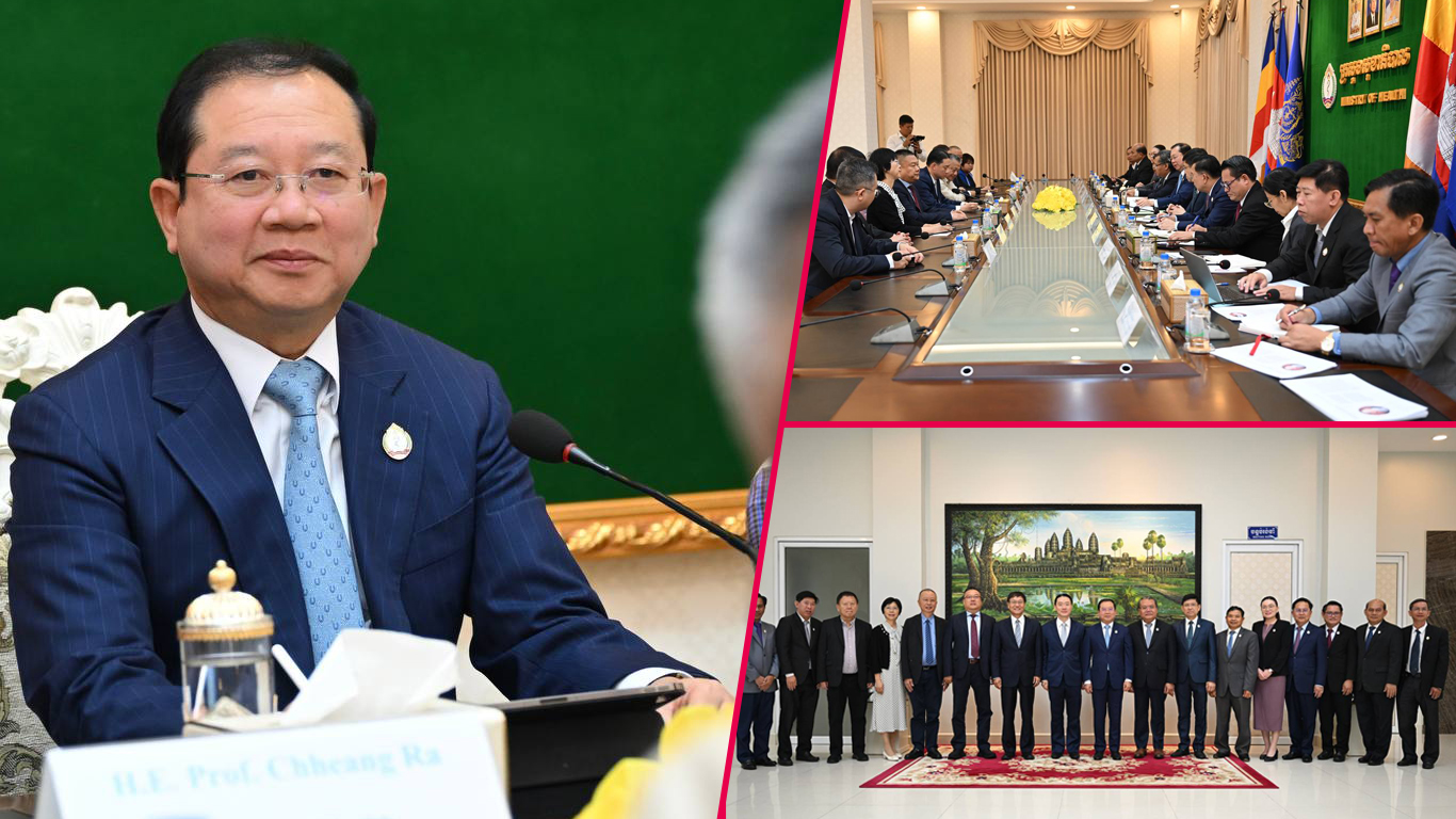 (ភ្នំពេញ)៖ ឯកឧត្តមសាស្ត្រាចារ្យ ឈាង រ៉ា រដ្ឋមន្រ្តីក្រសួងសុខាភិបាល នៅព្រឹកថ្ងៃទី១៤ ខែតុលា ឆ្នាំ២០២៥ បានទទួលជួបគណៈប្រតិភូវិនិយោគមកពីសាធារណរដ្ឋប្រជាមានិតចិន ដឹកនាំដោយឯកឧត្តម សេង ញ៉ក់ សមាជិកសភា និង ជាតំណាងអ្នកវិនិយោគ ព្រមទាំងមានការចូលរួមដោយ ឯកឧត្តម សូ ហ្វង់ ទីប្រឹក្សាឯកឧត្តម អ៊ុច បូររិទ្ធ លោក យ៉ង លីវ ប្រធានក្រុមហ៊ុនShenzhen Jintong និងសាស្ត្រាចារ្យ ហ្សាង សូជី ប្រធានផ្នែកវិទ្យាសាស្ត្រ និងស្រាវជ្រាវវេជ្ជសាស្ត្ររួមជាមួយក្រុមការងារ ដោយមានគោលបំណងស្វែងយល់អំពី ឱកាសវិនិយោគលើវិស័យឱសថ និងសុខាភិបាលនៅកម្ពុជា ។