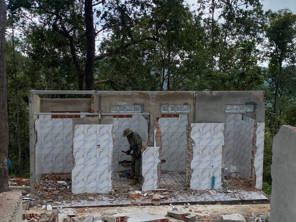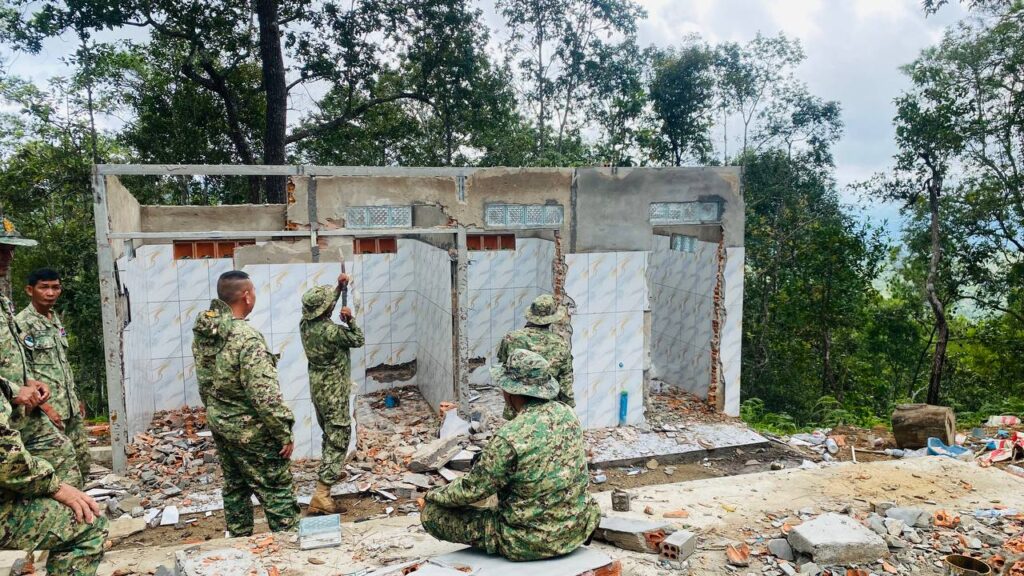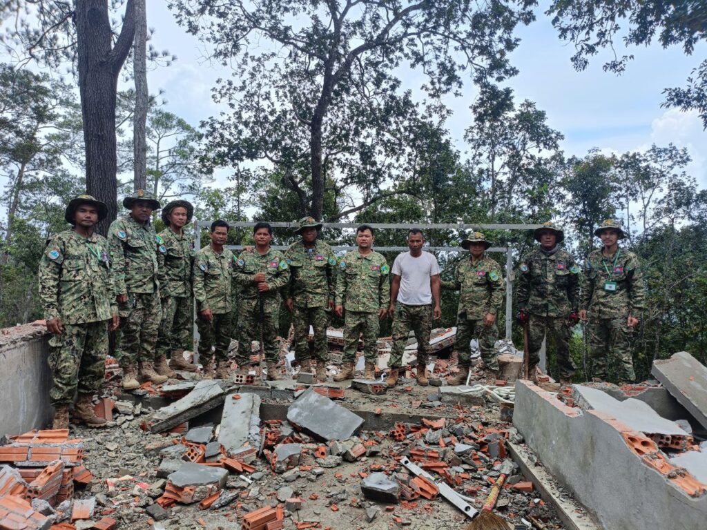(ភ្នំពេញ)៖ មន្រ្តីឧទ្យានុរក្សនៃមន្ទីរបរិស្ថានខេត្តកំពង់ស្ពឺ កាលពីថ្ងៃទី១៣ ខែតុលា ឆ្នាំ២០២៥ បានបន្តចាត់វិធានការលើករណី ការកាប់គាស់រុករាន ឬការឈូសឆាយដីព្រៃ ធ្វើជាកម្មសិទ្ធិ និងសន្និធិឈើ ដោយគ្មានការអនុញ្ញាត ក្នុងក្នុងឧទ្យានជាតិព្រះសុរាម្រឹតកុសុមៈ«គិរីរម្យ» នៅក្នុងភូមិសាស្រ្តឃុំចំបក់ ស្រុកភ្នំស្រួច ខេត្តកំពង់ស្ពឺ។ មន្ត្រីឧទ្យានុរក្សការិយាល័យឧទ្យានជាតិគិរីរម្យ បានបន្តចុះទៅដល់ទីតាំងដើម្បីចាត់វិធានការច្បាប់មួយចំនួនទៀត ក្នុងនោះបានរើគ្រឹះសំណង់ផ្ទះលំហែ (បណ្តោយ ១២ម៉ែត្រ និងទទឹង៦ម៉ែត្រ) ចំនួន១ កន្លែង និងបន្ទប់ទឹកចំនួន ១ កន្លែង ស្មើនិង៤បន្ទប់ (បណ្តោយ៦ម៉ែត្រ និងទទឹង២ម៉ែត្រ) និងបានរើទ្វារដែកចំនួន ចំនួន៤ផ្ទាំង (២ម៉ែត្រ៤០×១ម៉ែត្រ៦០)។