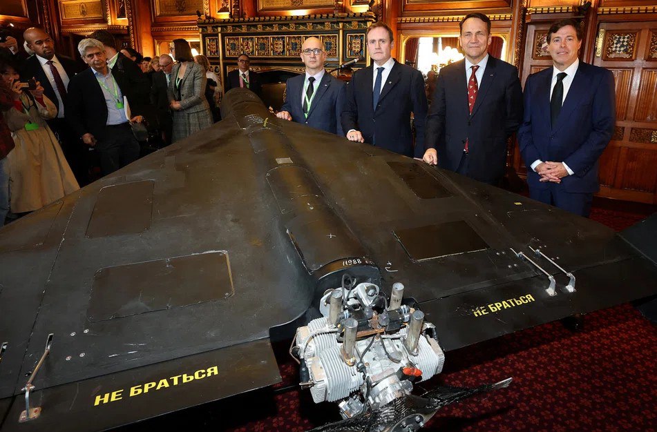 នៅពេលបង្ហាញយន្តហោះដ្រូន Shahed-136 ផលិតដោយអ៊ីរ៉ង់នៅទីក្រុងឡុងដ៍ ចក្រភពអង់គ្លេស ដែលត្រូវបានបាញ់ធ្លាក់នៅអ៊ុយក្រែន, រដ្ឋមន្រ្តីការបរទេសប៉ូឡូញ លោក Radoslaw Sikorski បានជំរុញឱ្យរដ្ឋសមាជិកអឺរ៉ុបបន្តការគាំទ្ររបស់ពួកគេដល់អ៊ុយក្រែនក្នុងសង្គ្រាមប្រឆាំងនឹងរុស្ស៊ី។