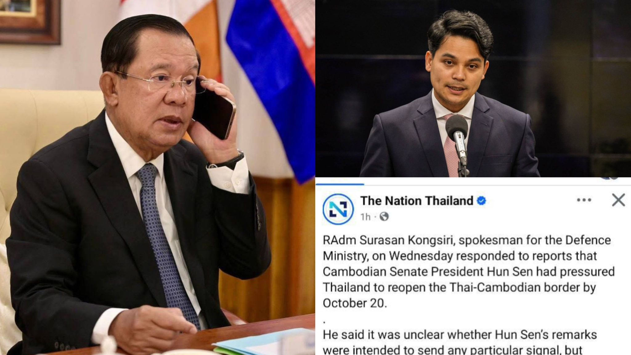 អ្នកនាំពាក្យព្រឹទ្ធសភា ឯកឧត្តម ជា ធីរិទ្ធ បានច្រានចោលការលើកឡើងរបស់លោក Surasan Kongsiri អ្នកនាំពាក្យក្រសួងការពារជាតិថៃ ដែលបានថ្លែងនៅថ្ងៃនេះថា សម្ដេចតេជោ ហ៊ុន សែន ប្រធានព្រឹទ្ធសភា នៃព្រះរាជាណាចក្រកម្ពុជា បានដាក់សម្ពាធឱ្យប្រទេសថៃបើកច្រកព្រំដែននៅថ្ងៃទី២០ តុលា ខាងមុខនេះ។