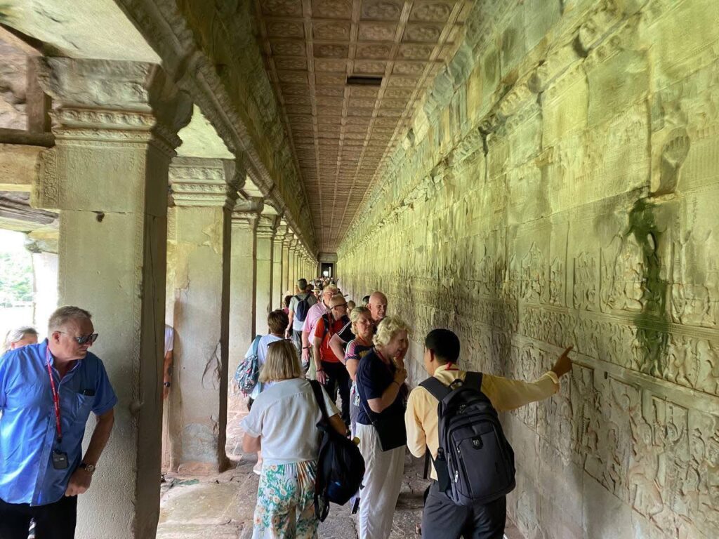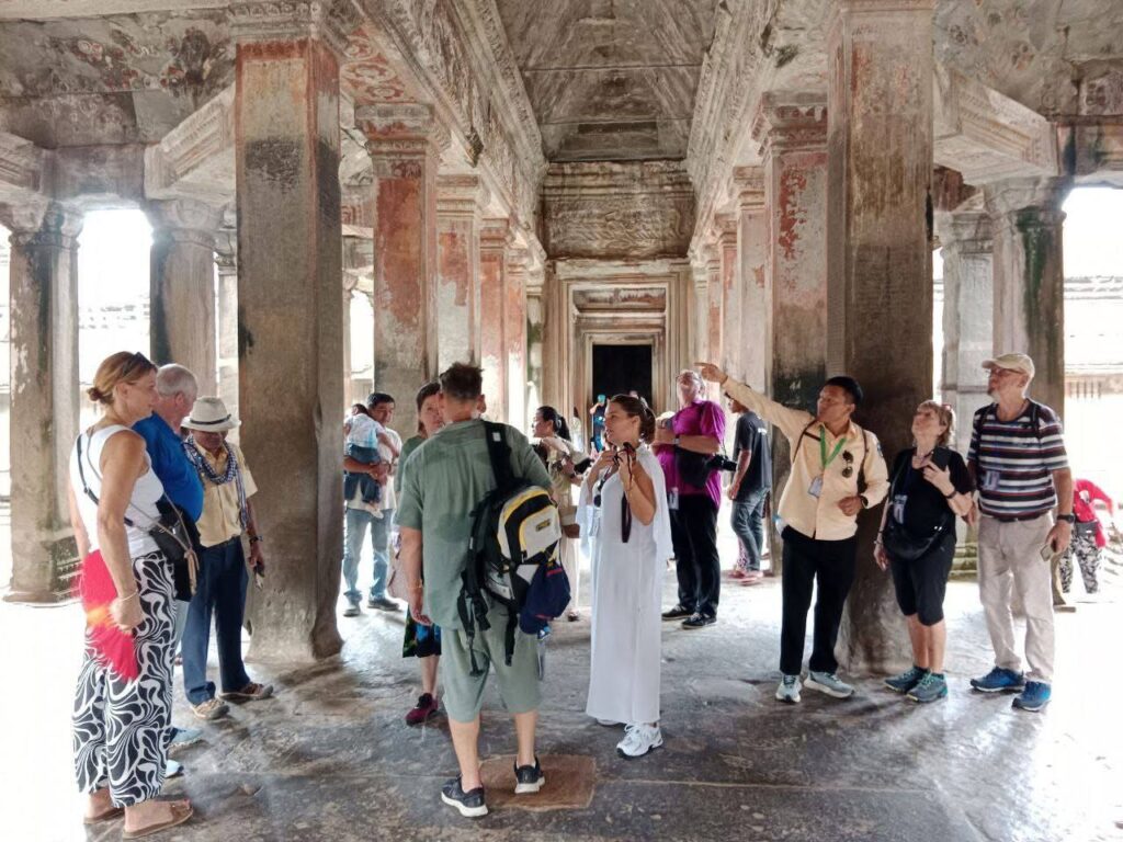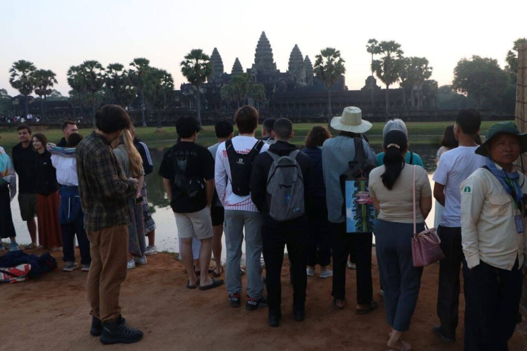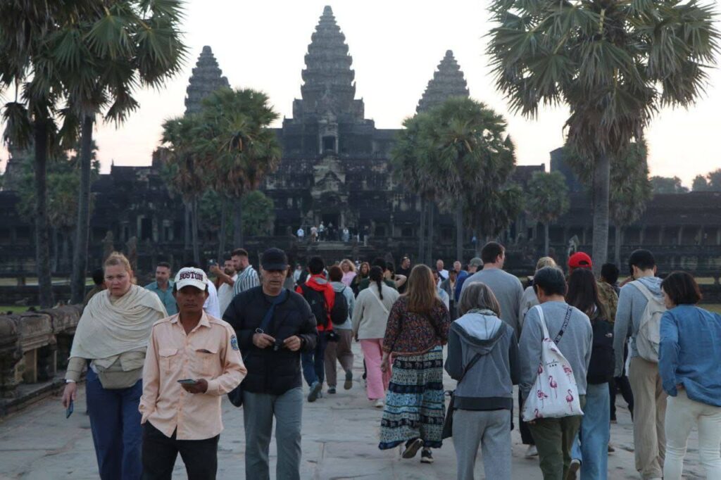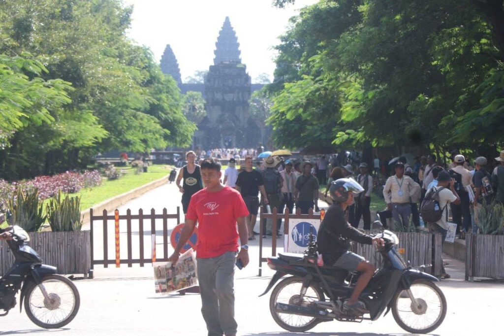 ការចូលទស្សនាប្រាសាទអង្គរវត្ត ដើរចូលពីទិសខាងលិច ទេសចរគ្រប់រូបនឹងឃើញទិដ្ឋភាពដ៏ស្កឹមស្កៃ និងគោរពលើកតម្លៃប្រាសាទ