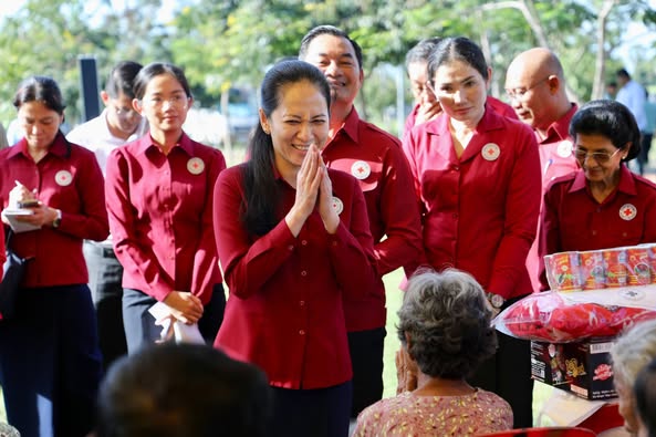 លោកជំទាវបណ្ឌិត ពេជ ចន្ទមុន្នី បាននាំមកនូវព្រះរាជបណ្ដាំផ្ញើសួរសុខទុក្ខ ប្រកបដោយព្រះរាជហឫទ័យនឹករលឹក និងសេចក្តីស្រឡាញ់ដ៏ជ្រាលជ្រៅពី សម្តេចព្រះមហាក្សត្រី ព្រះវររាជមាតាជាតិខ្មែរ ព្រះប្រធានកិត្តិយសកាកបាទក្រហមកម្ពុជា ជាទីគោរពសក្ការៈដ៏ខ្ពង់ខ្ពស់បំផុត និងការផ្ដាំផ្ញើសួរសុខទុក្ខពី សម្ដេចកិត្តិព្រឹទ្ធបណ្ឌិត ប៊ុន រ៉ានី ហ៊ុនសែន ប្រធានកាកបាទក្រហមកម្ពុជា បើទោះបីជាលោកទាំងទ្វេ មិនបានយាង និងអញ្ជើញជួប លោកតា លោកយាយ អ៊ំ ពូ មីង បងប្អូនទាំងអស់ដោយផ្ទាល់ក៏ដោយ ក៏សម្តេចព្រះវររាជមាតាជាតិខ្មែរ និងសម្តេចកិត្តិព្រឹទ្ធបណ្ឌិត តែងតែគិតគូរពីសុខទុក្ខរបស់បង-ប្អូនជនរួមជាតិយើងនៅគ្រប់ទីកន្លែង ។
