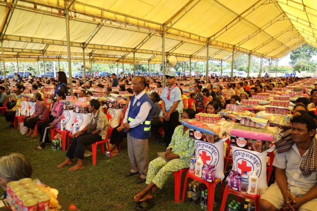 គ្រួសារងាយរងគ្រោះបំផុតទាំង ១.៣២៩គ្រួសារ មានក្តីរំភើបរីករាយឥតឧបមា ដោយបានទទួលអំណោយមនុស្សធម៌ពីកាកបាទក្រហមកម្ពុជា ក្រោមម្លប់គង់ប្រថាប់ដ៏ឧត្តុង្គឧត្តមនៃ សម្តេចព្រះមហាក្សត្រី ព្រះវររាជមាតាជាតិខ្មែរ ជាព្រះប្រធានកិត្តិយស និងសម្តេចកិត្តិព្រឹទ្ធបណ្ឌិត ប៊ុន រ៉ានី ហ៊ុនសែន ជាប្រធាន ដោយក្នុងគ្រួសារនីមួយៗទទួលបាន៖ អង្ករ ៣០គីឡូក្រាម, មី១កេស, ត្រីខ ១០កំប៉ុង, ទឹកស៊ីអ៊ីវ ១យួរ, ទឹកត្រី ១យួរ, ម្សៅសាប៊ូ ១កញ្ចប់, សាប៊ូដុសខ្លួន ១ដប, ប្រេងខ្យល់ ២ដបតូច, ឃីត (មុង ភួយ សារុង ក្រមា) ១កញ្ចប់, ថវិកា ២០.០០០រៀល ព្រមទាំងអាហារសម្រន់ នំប៉័ង ១ដើម និងទឹកបរិសុទ្ធ ១ដប។